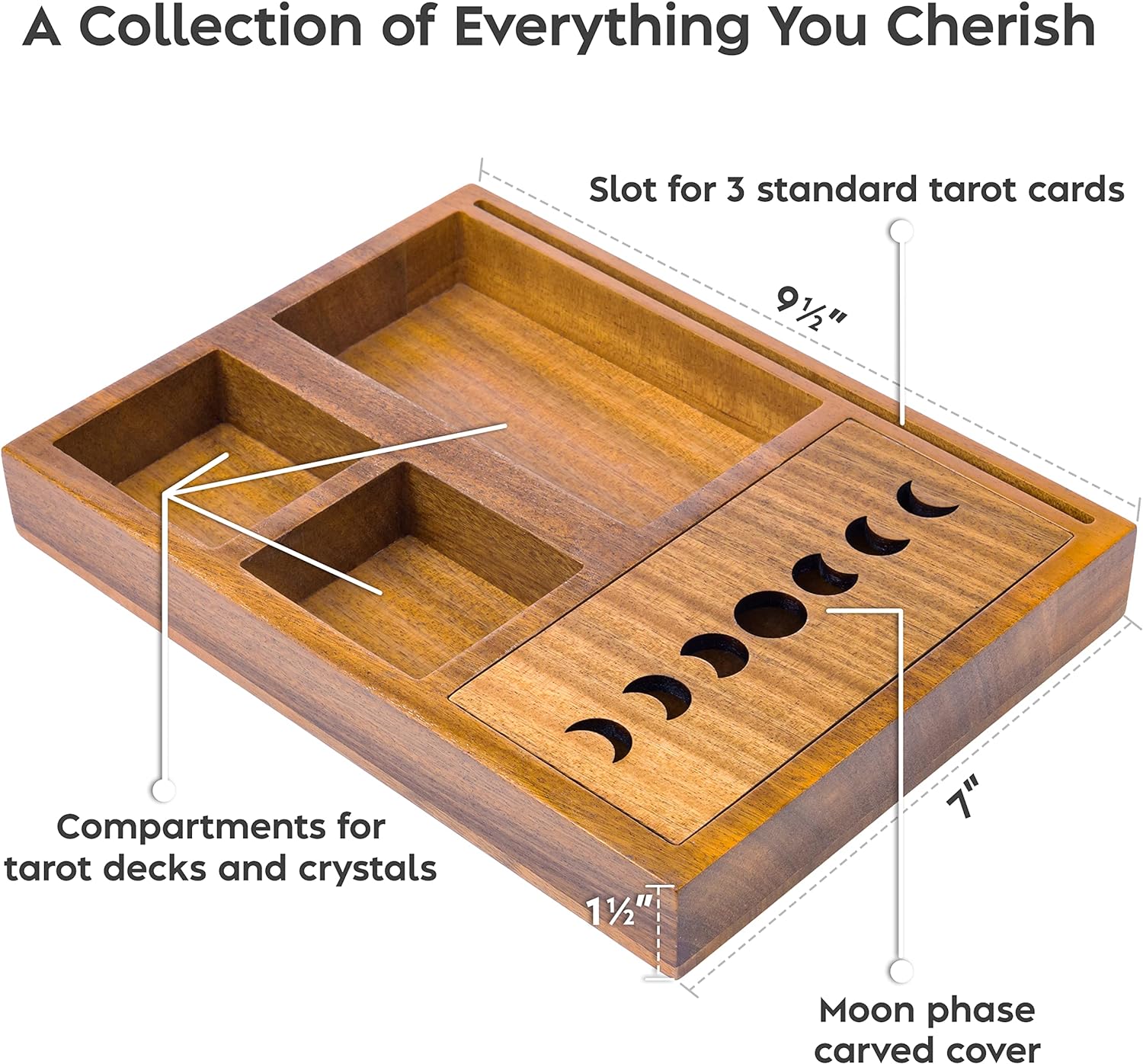- Ein auffälliges Herzstück – Suchen Sie nach dem fehlenden Stück, um Ihre Altarvorräte zu vervollständigen? Dieser Kartenständer hat mehrere Fächer, um Ihre Tarot-Decks, wertvolle Edelsteine und andere Schätze aufzubewahren. Bewahren Sie alles,