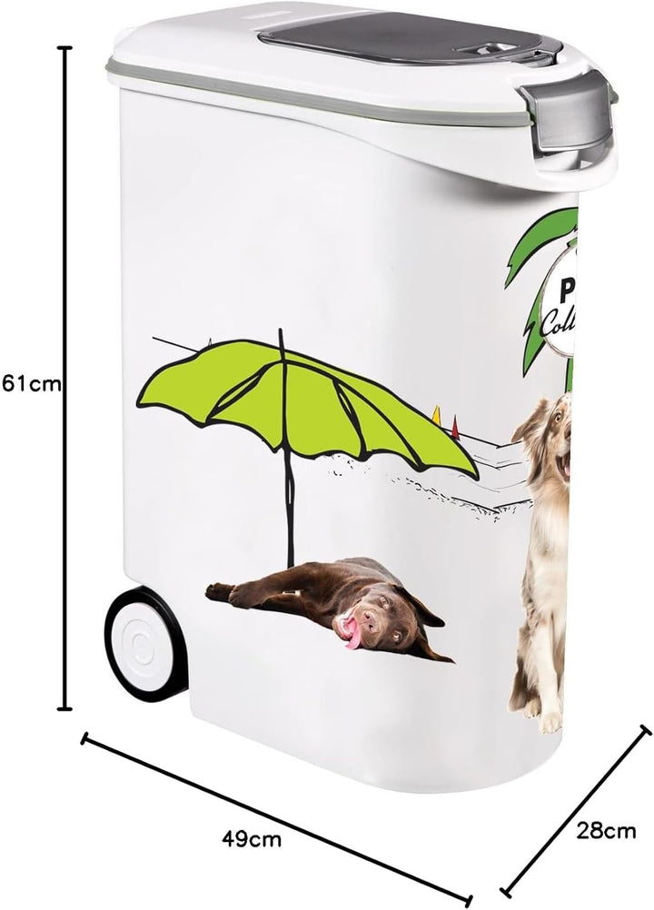 - Einfach zu handhaben: Sie werden keine Probleme haben, diese Trockenfutter zu bewegen, auch wenn sie gefüllt ist. Sie ist mit stabilen Rollen und zwei praktischen Griffen ausgestattet.