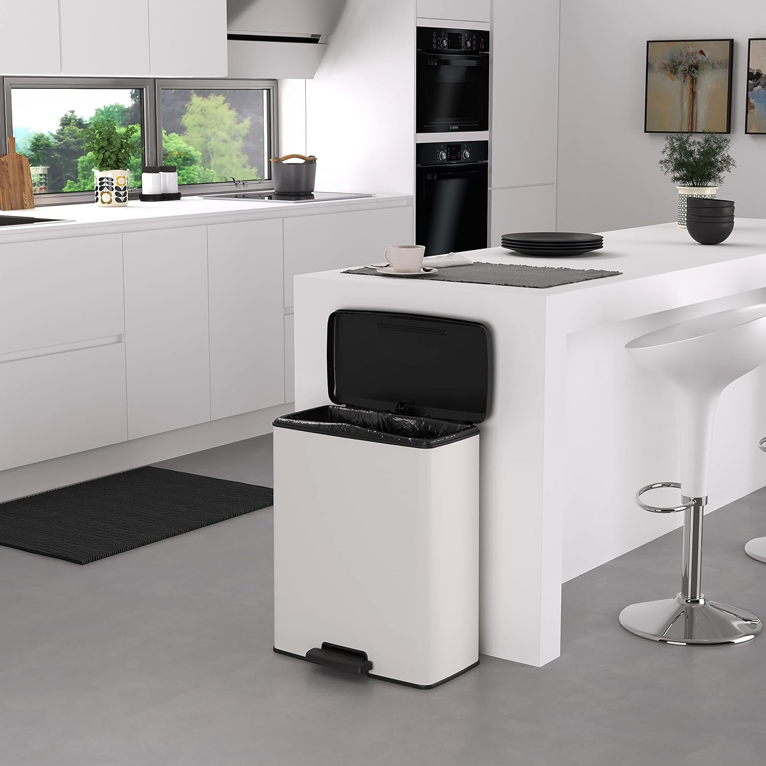 - Unverwechselbares Aussehen: Sie werden keine Lust haben, Ihren Mülleimer zu tarnen. Mit seiner schönen weissen Schale und dem schmutzabweisenden und schmutzabweisenden Material passt sie perfekt zu Ihrer Dekoration.