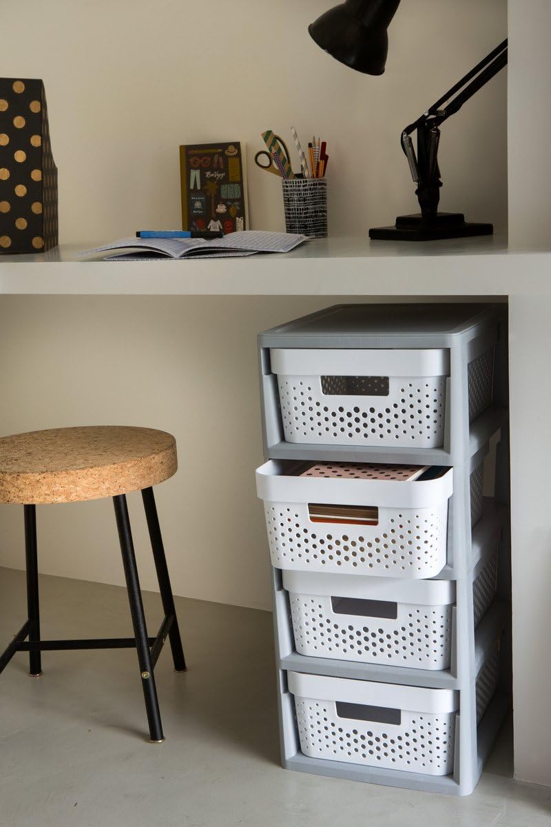 - Curver Regal 4x10L, Harz, Grauweiss, 30x36x69