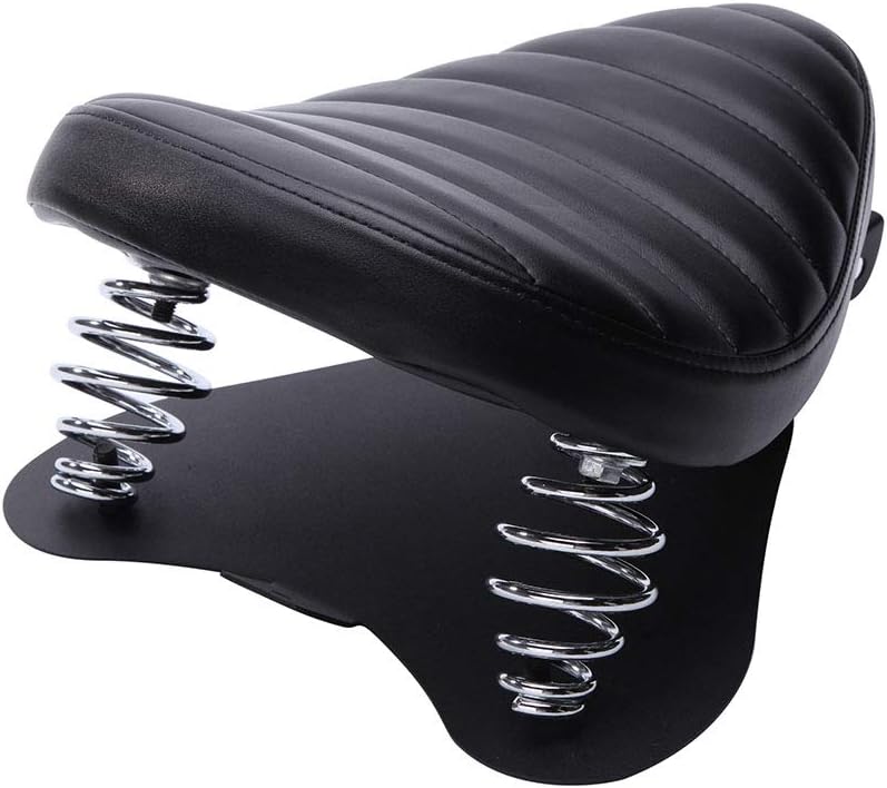 - 【Solo-Sitzkissen für Motorräder】 Universelles Solositzkissen für Motorräder mit Federn und Halterung. Material: PU-Leder + Hochleistungsstahl, Sitzfarbe: Schwarz; Frühlingsfarbe: Chrom.
