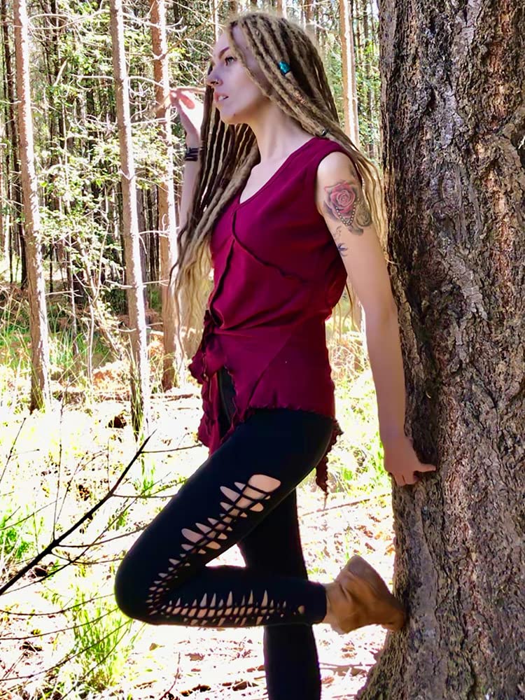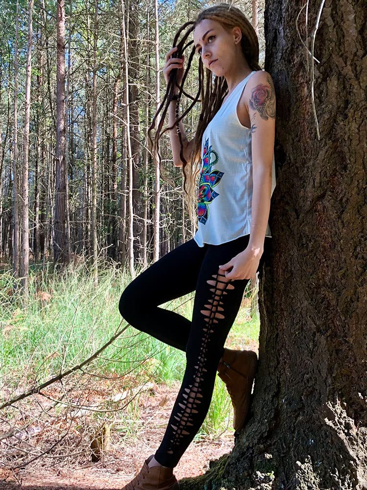 Cut Out Leggings mit durchgehendem Muster an jedem Bein Schlitzen Elfen Feen Goa Psychedelic Leggins