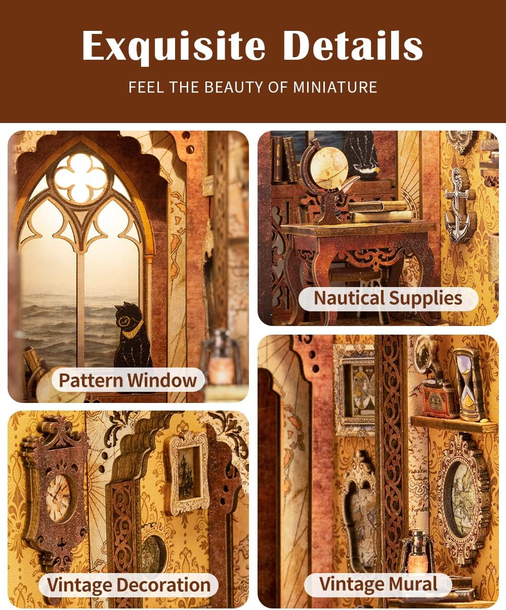 - 【Einzigartiges Designkonzept】Diese book nook ist von Segelerinnerungen inspiriert. Die Schichten kleiner Pavillons am Meer sind voller Spuren der Geschichte. Öffnen Sie das Logbuch und verfolgen Sie die Erinnerung an das Meer. Jeder Gegenstand