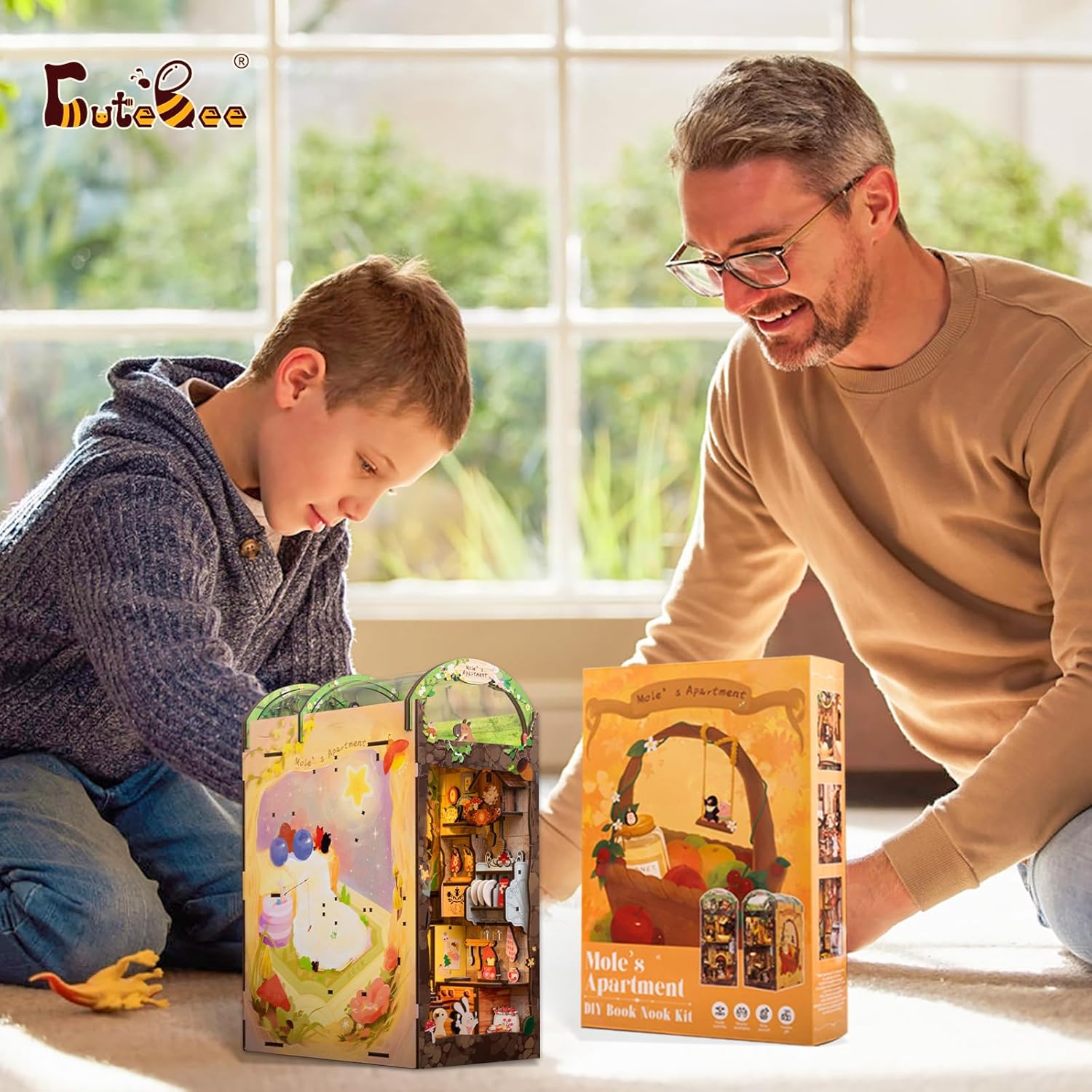 CUTEBEE Book Nook Miniatur Haus Modellierung,DIY Puppenhäuser Miniatur Haus Kit mit Dust Cover,Bookn