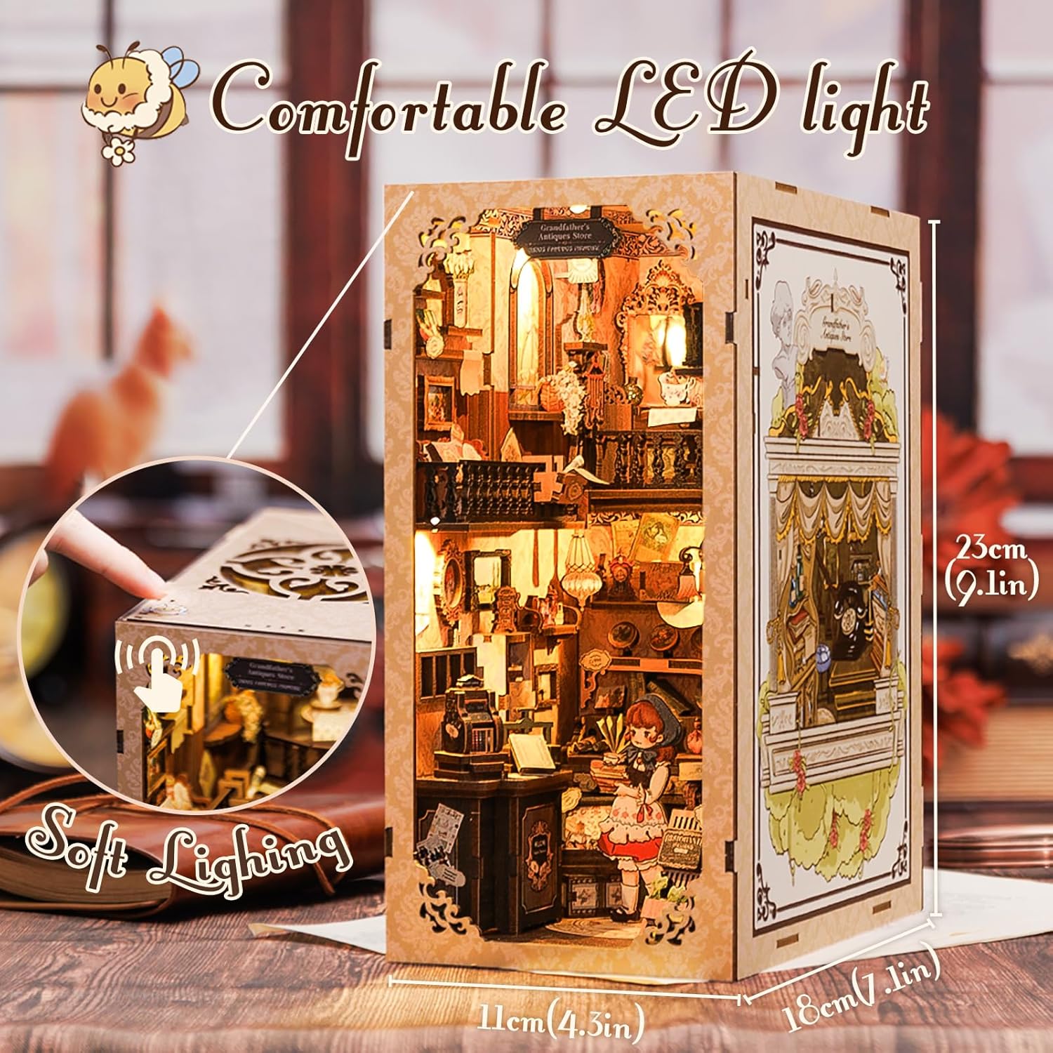 - 【Komfortables LED-Licht & Sensor Swtich】Das komfortable LED-Licht verbessert die Anzeige und das Ambiente der Miniaturwelt; Dieser Bücherregaleinsatz wurde mit Sensor Swtich aufgerüstet, der sehr bequem und mühelos ein- und ausgeschaltet werden