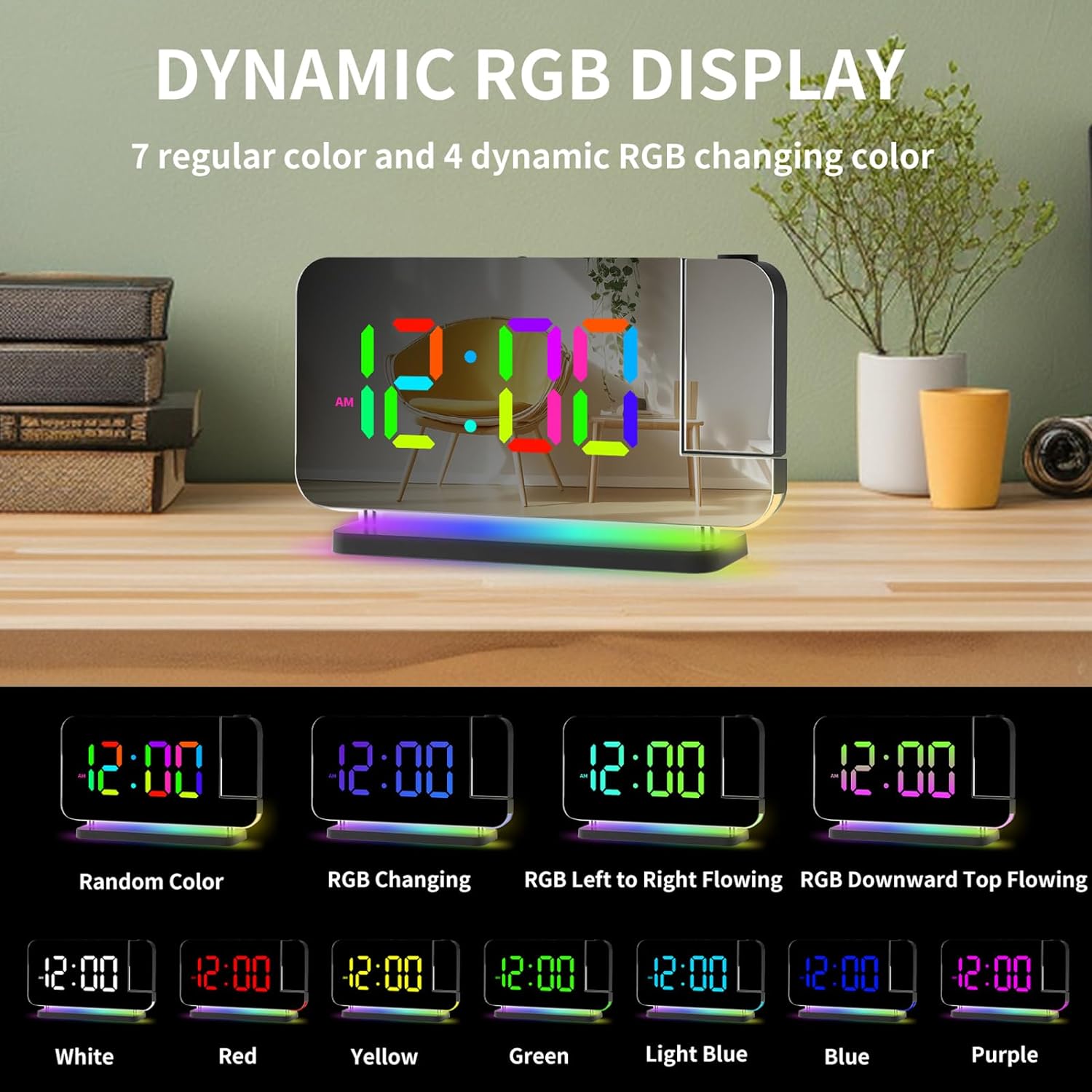 - 【Mehrfache Nutzungsfunktionen】Dieser Wecker ist nicht nur eine uhr mit projektion. Er kann auch als Nachtlicht, Spiegel verwendet werden. Der Nachttischwecker mit Licht verfügt über 11 Beleuchtungsmodi, die je nach Bedarf eingestellt werden können