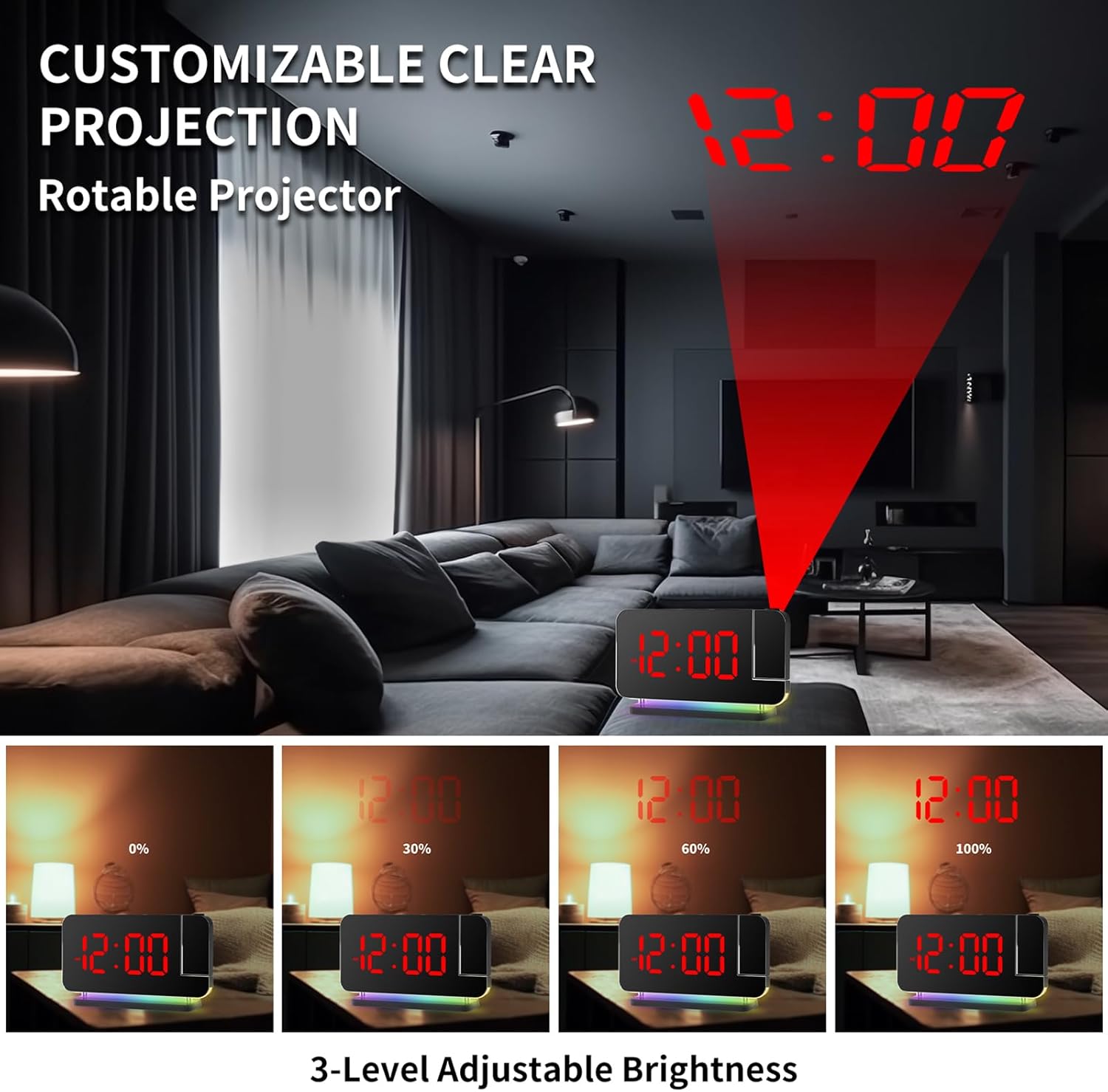 - 【Bunte LED-Anzeige】Im Vergleich zu normalen Weckern hat diese wecker projektion mit licht 11 einstellbare Bildschirmziffernfarben, 4 dynamische Gradientenanzeigen und 7 monochrome Anzeigen. Das mehrfarbige Design macht es mehr modisch. Die