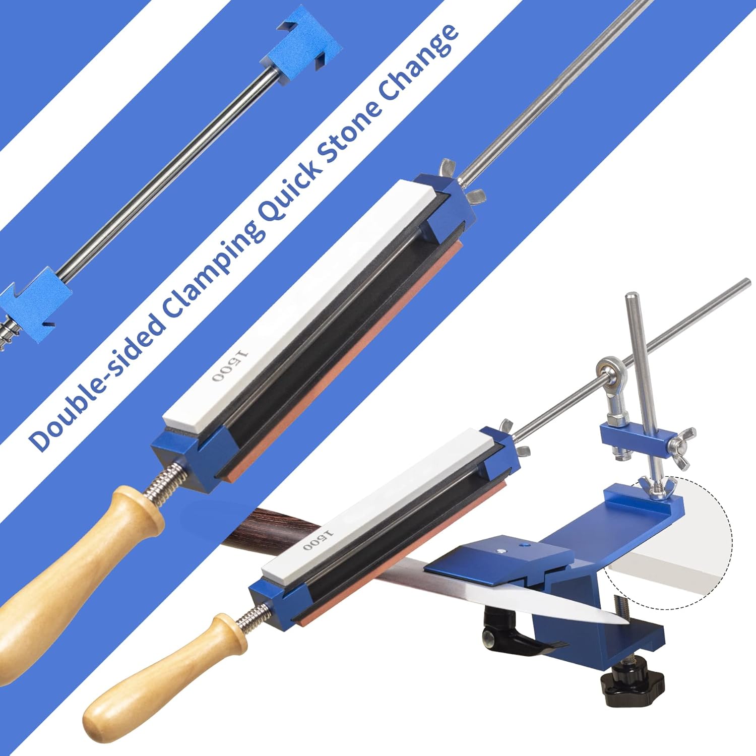 - Exklusives verbessertes Schnellklemmen – schnelles Klingenklemmsystem kann Ihre Messerschärfarbeiten tatsächlich glätten. Sie können es fest auf den Tisch, die Küchenarbeitsplatte oder andere Plattformen klemmen. Die Klingenklemmvorrichtung kann