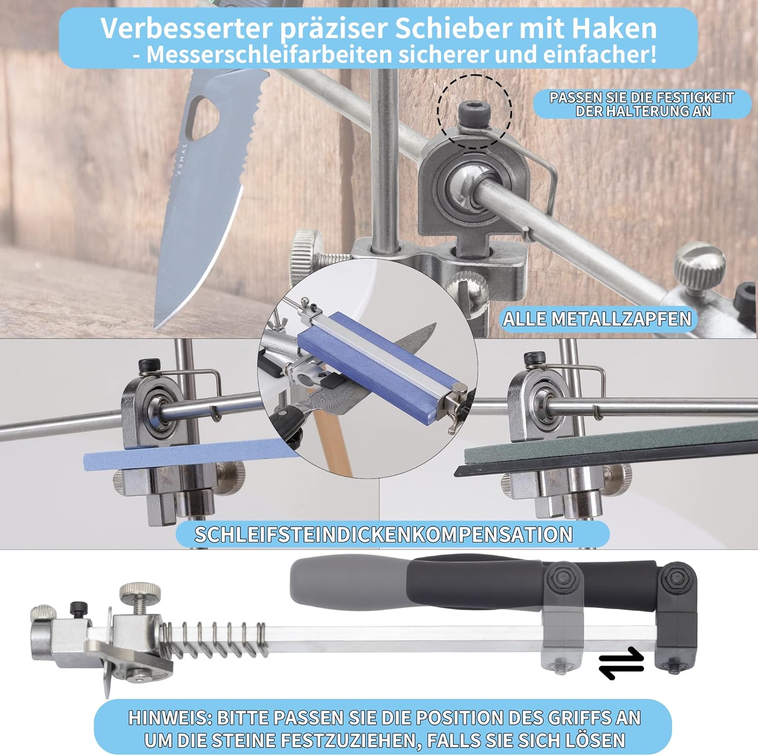 - ÜBERLEGENES PROFESSIONELLES MESSERSCHÄRFER-SET MIT PREMIUM-TRAGEBOX - Das meiste Material des RX-009 Verbesserten Messerschärfer-Kits besteht aus Edelstahl, ist sehr langlebig und langlebig. Ausgestattet mit 4 hochwertigen Schleifsteinen: 120#, 320#,