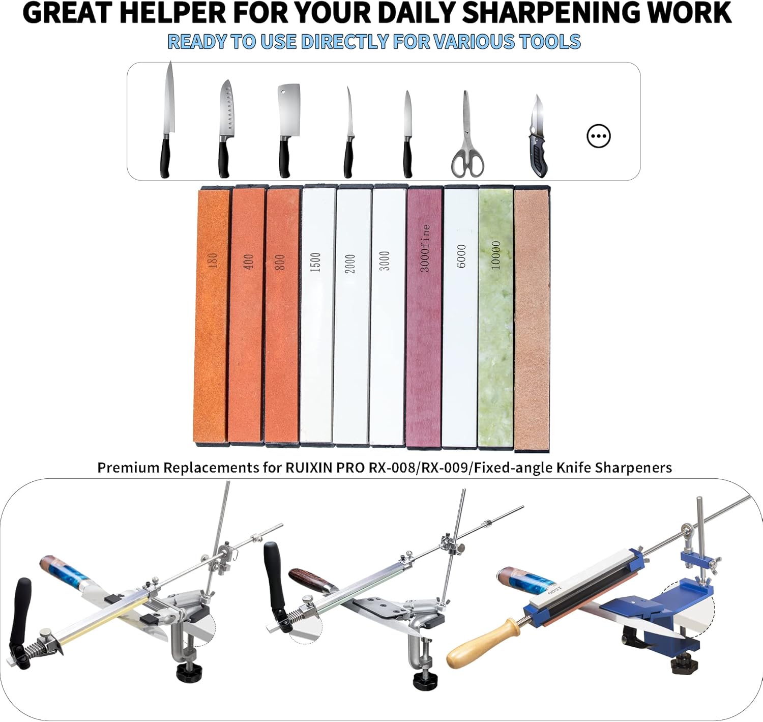 - Hochwertiges Schleifstein-Set für Ihre täglichen Messerschärfarbeiten – mit unserem basierten Schleifstein-Set können Sie als Ersatzzubehör für RUIXIN PRO RX-008, RX-009, PRO III Messerschärfer mit festem Winkel oder einfach direkt für