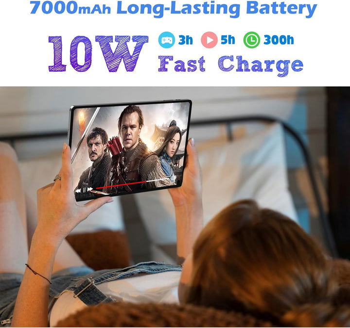 - 【2K Immersive Visual】Verglichen mit den HD- oder FHD-Tablets auf dem Markt hat unser 10+ Zoll Android-Tablet eine Bildschirmauflösung von bis zu 1920 x 1200, die grösser und klarer ist. Egal, ob Sie fernsehen, arbeiten oder Spiele spielen, es