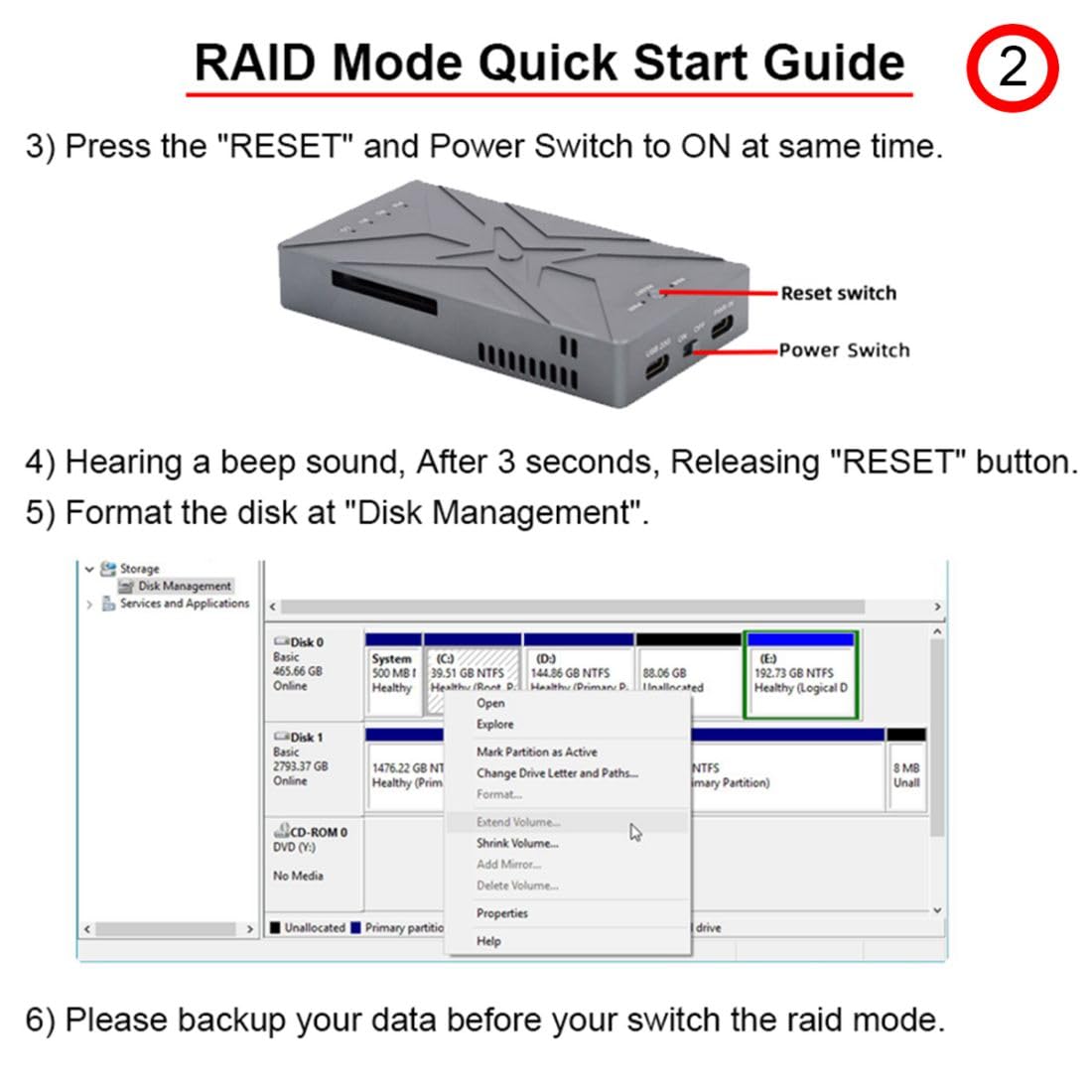 - Vier RAID-Modi: RAID 1,RAID 0, JBOD und BIG.