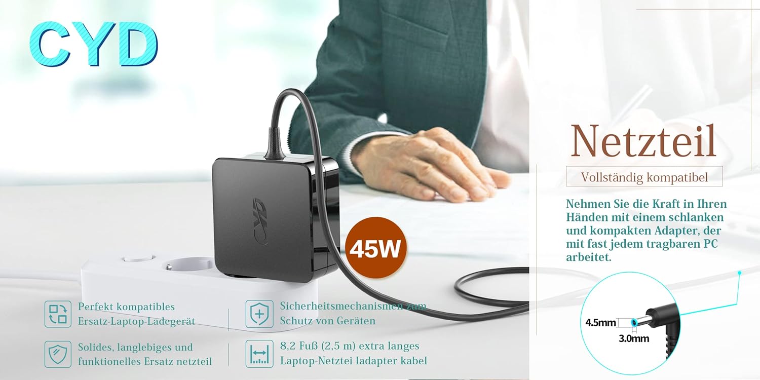 - ✅【Eingang: 100-240V 50-60Hz Ausgang: 19.5V 2.31A 45W,Anschluss:4.5*3.0MM】CYD PowerFast-Notebook-Netzteil für HP-laptop-ladekabel 15-BA009DX X7T78UA 15-ba007cy 15-ba008ca 15-ba008cy 15-ba009cy 15-ba009dx 11m-ad013dx Stream 14 854054-002 15-ba009ds
