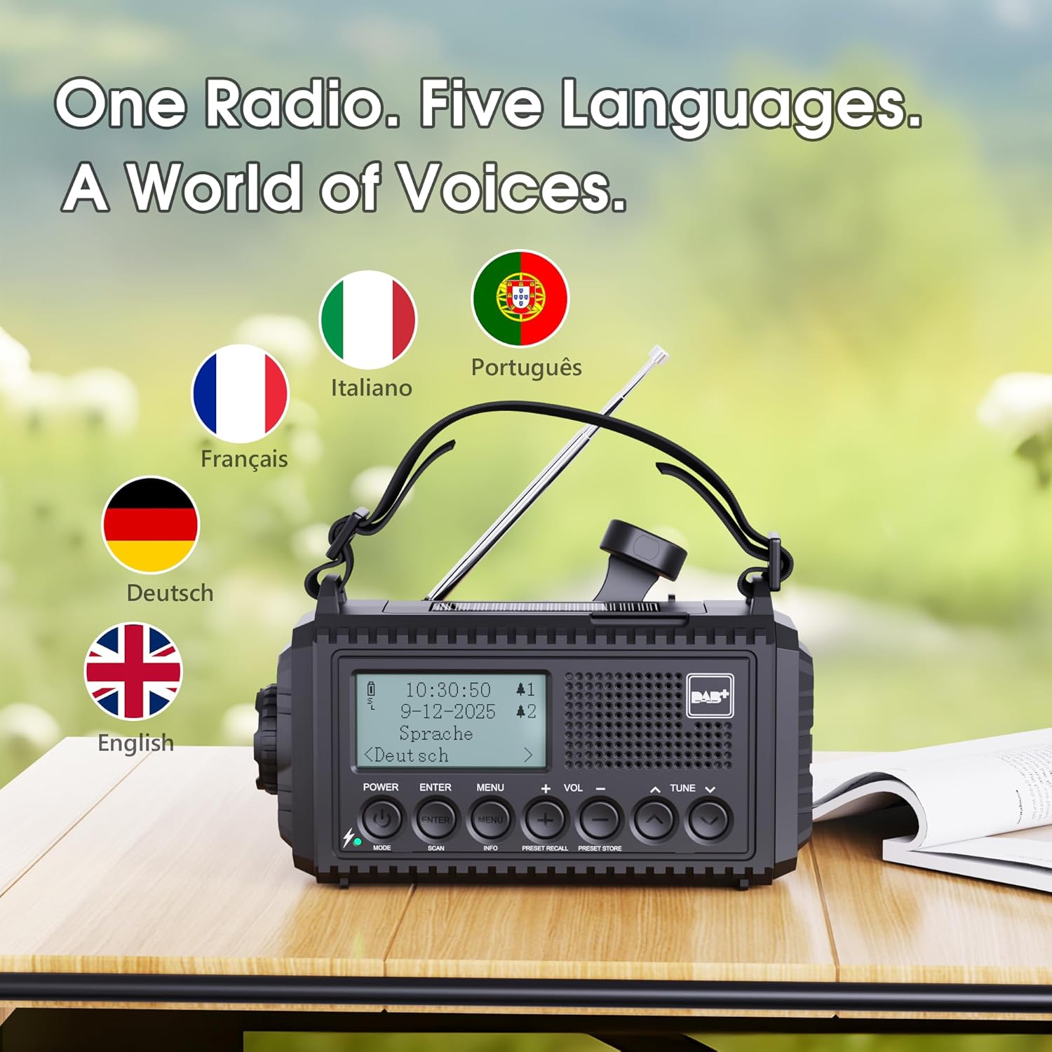 - 【4-in-1 RADIO】Dies ist eine multifunktionale DAB/DAB+/FM Digitales Radio, sie können damit nicht nur Ihre Lieblingssendungen anhören, sondern auchzum aufladen des handys im notfall, Wecker, Dynamo, Leselampe und Taschenlampe. Diese radio hat