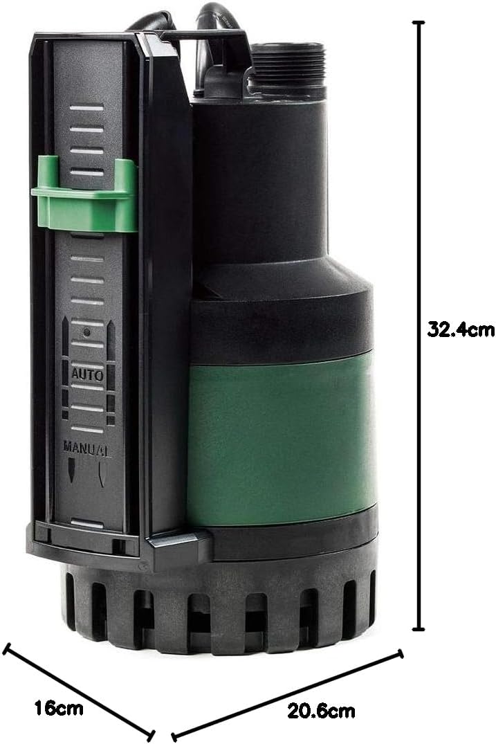 - Tauchpumpe zur Entwässerung mit vertikalem Durchfluss, geeignet für den Hausgebrauch von stationären Anwendungen mit automatischem Betrieb, zum Austrocknen von Kellern und Überschwemmungen. Dank seiner kompakten und handlichen Form findet sie auch