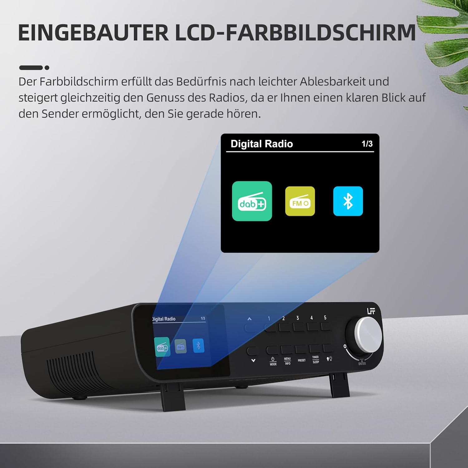 • DAB & FM Digital Radio: Unterstützt ultra-breite Signale in 2 Bändern von UKW (87,5 - 108 MHz) und DAB (174 bis 240 MHz). Das DAB-Radio hat 60 voreingestellte Sender, sodass Sie 30 DAB-Sender sowie 30 UKW-Sender speichern können. Sie können auch 5