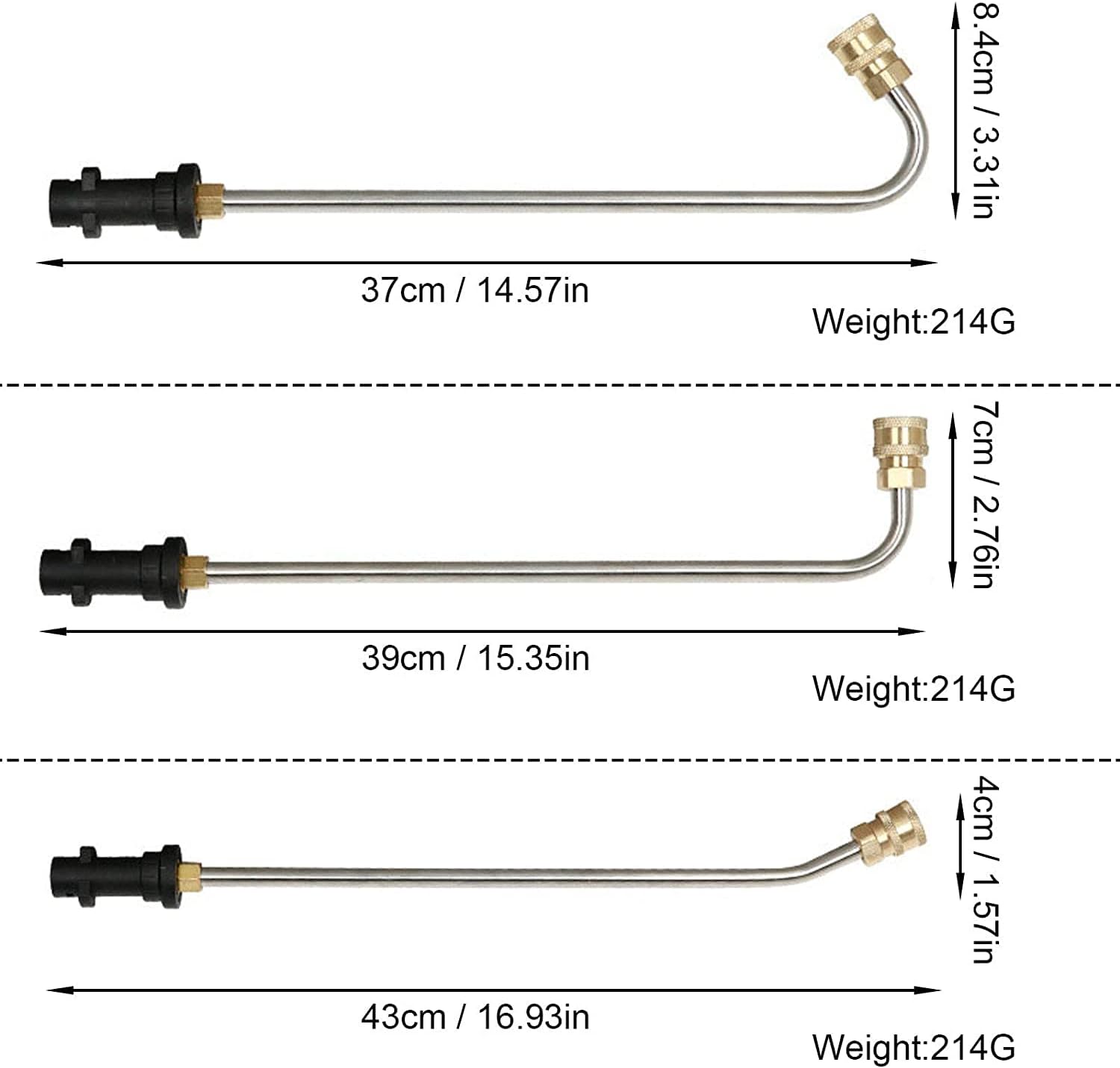 • Hinweis: Sie müssen 1/4-Zoll-Schnellanschluss-Hochdruckreiniger-Zubehör verwenden, um es an Sprühdruckwasser anzuschliessen, Sie können Düsen-Kit-Zubehör anschliessen.Wir haben 3 Form-Verlängerungsstangen für Ihre Wahl