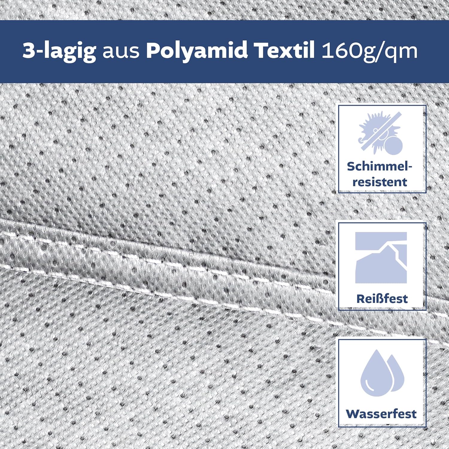 - WITTERUNGSBESTÄNDIG: Die Schutzhülle für ihr Caravan-Dach ist aus robustem, 160 g/qm starkem Gewebe. Die Schutzplane ist reissfest und UV-stabil. Zusätzlich ist die Dachplane wasserabweisend und schimmelresistent