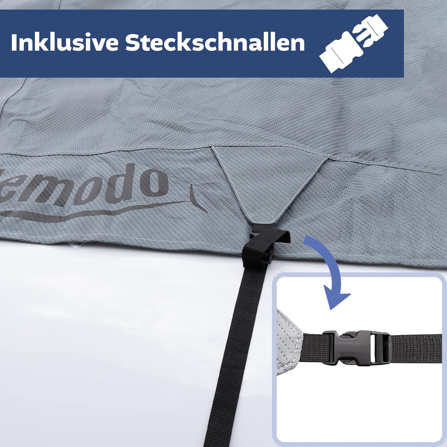 - EINFACHE HANDHABUNG: Eine einfache und schnelle Anbringung der Wohnmobil Abdeckplane gewährleisten die leicht zu bedienenden Spanngurte an den Seiten. Für Front und Heck gibt es jeweils 3 Sicherungsgurte