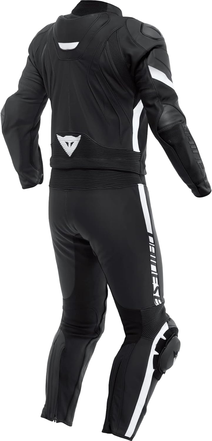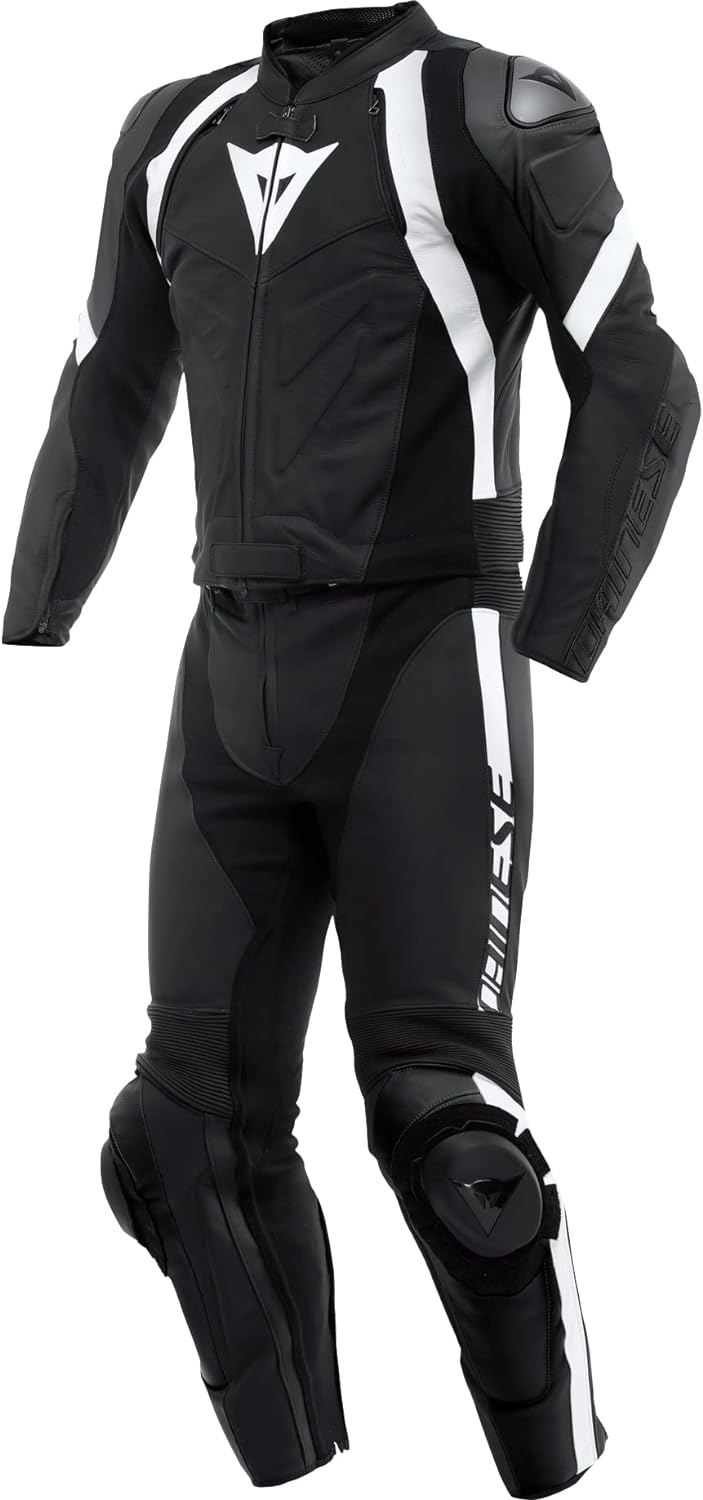 - Zweiteiliger Motorradanzug aus Tutu-Rindsleder, mit Aluminiumslidern an den Schultern, aerodynamischem Höcker und elastischen Einsätzen für maximale Bewegungsfreiheit. Eine Dainese-Ikone.