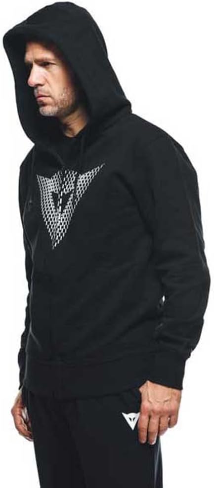 PRODUKTBESCHREIBUNGEN Dainese Hoodie Logo ist das lässige Sweatshirt mit Reissverschluss vorne und Kapuze aus reiner Baumwolle, bequem und praktisch für den Alltag und Freizeit. 100% Baumwolle