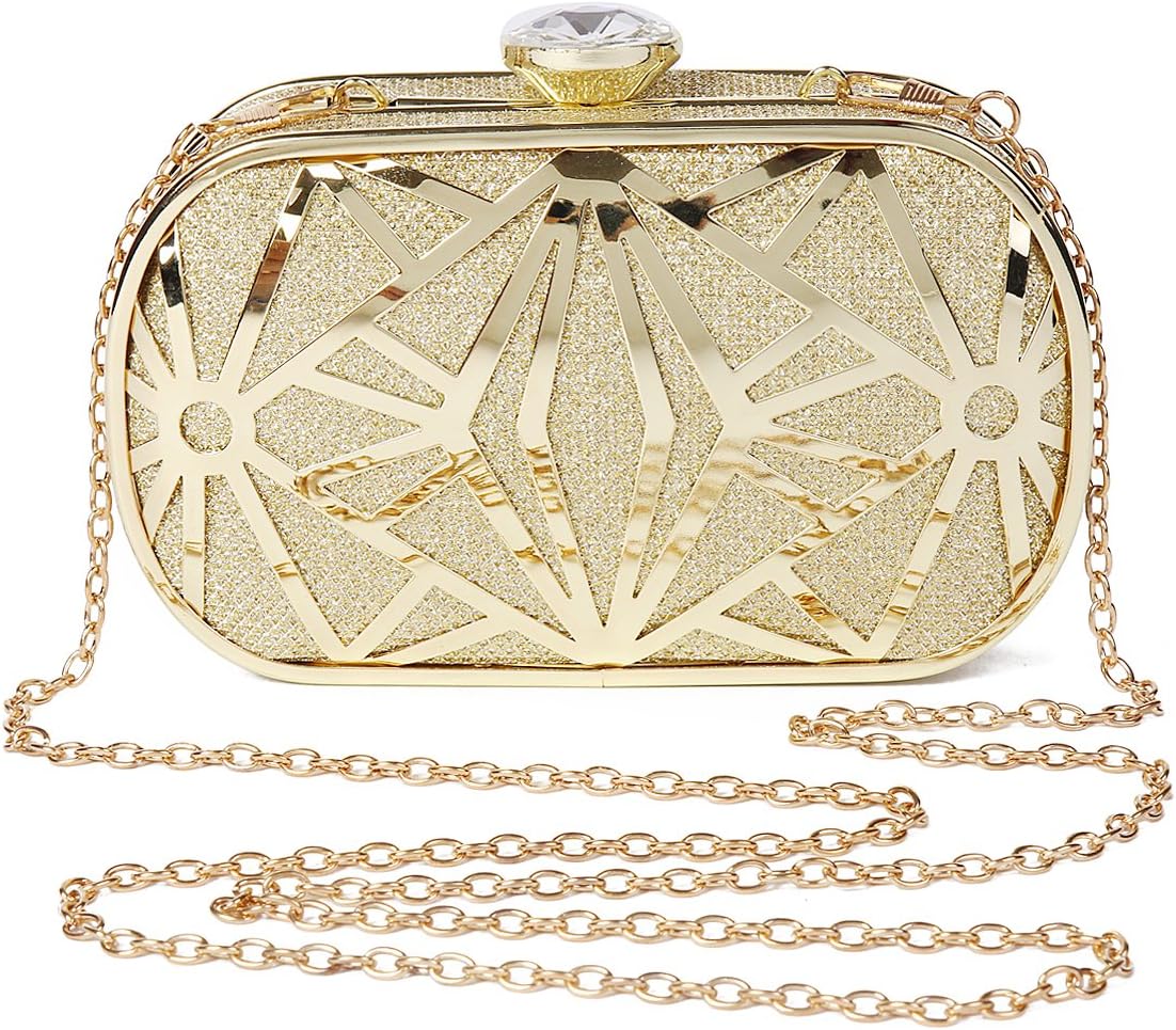 PRODUKTBESCHREIBUNGEN Hergestellt aus hochwertigem Kunststoff.Hartschale mit gerahmtem und glänzendem Metall vorne.Durch Schnappverschluss mit Schmuckstein geöffnet.Mit exquisitem Griff macht diese Handtasche leicht zu tragen.Eine abnehmbare Schulterkette:114cm.Im Inneren gibt es genug Platz für Münzen,Karten,Schlüssel oder persönlicher Gegenstand.Perfekt für die formale Party,Ball oder Cocktailparty.Sie könne der Artikel als Schultertasche,Clutchtasche oder Umhängetasche benutzen.Drei Farben zur Auswahl:Schwarz,Gold und Silber.Abmessung der Ware:16x9x3.5cm.