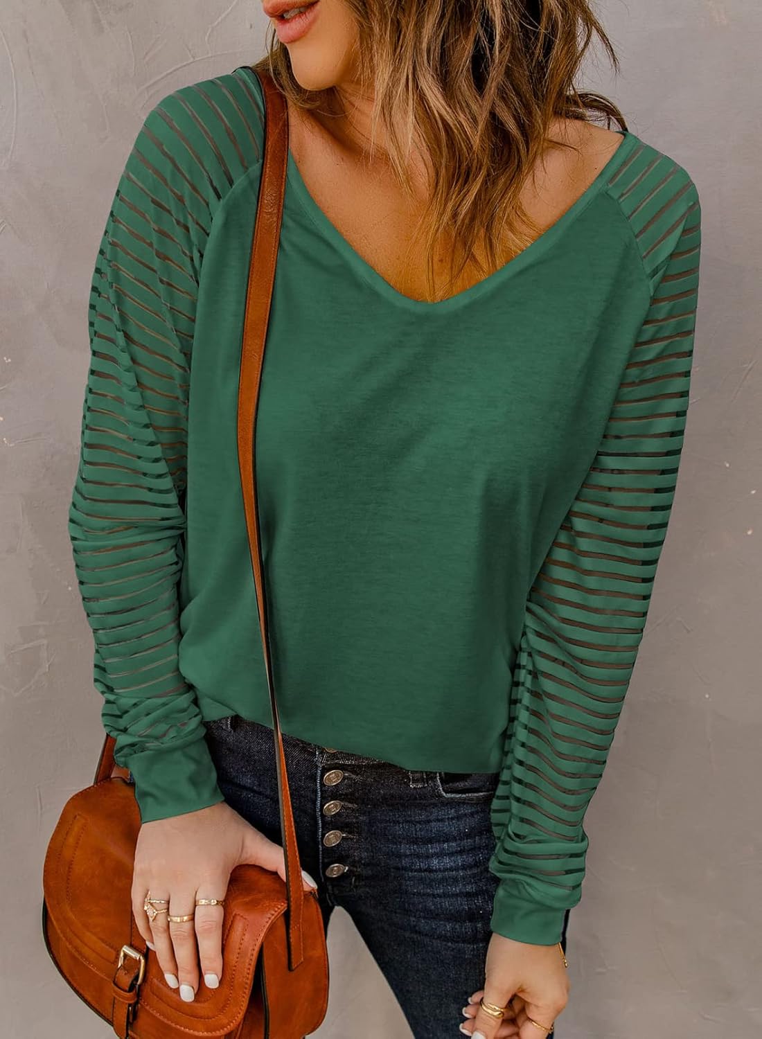 - ❤️Klassisch & Modisch, V-Ausschnitt, Langarm, Transparenten Einsätzen in den Ärmeln, geheimnisvoll und sexy, macht Sie attraktiver.
