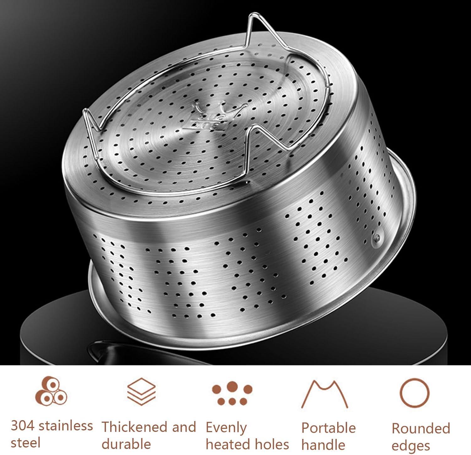 - [Dampfkorb-Einsatz]Ein Dampfkorb, der zum Dämpfen von Gemüse, Eiern und Knödeln geeignet ist. Der Dampfkorb ist aus langlebigem, strapazierfähigem Edelstahl gefertigt und hat regelmässige Löcher für einen effizienten und einfachen Wasserablauf.