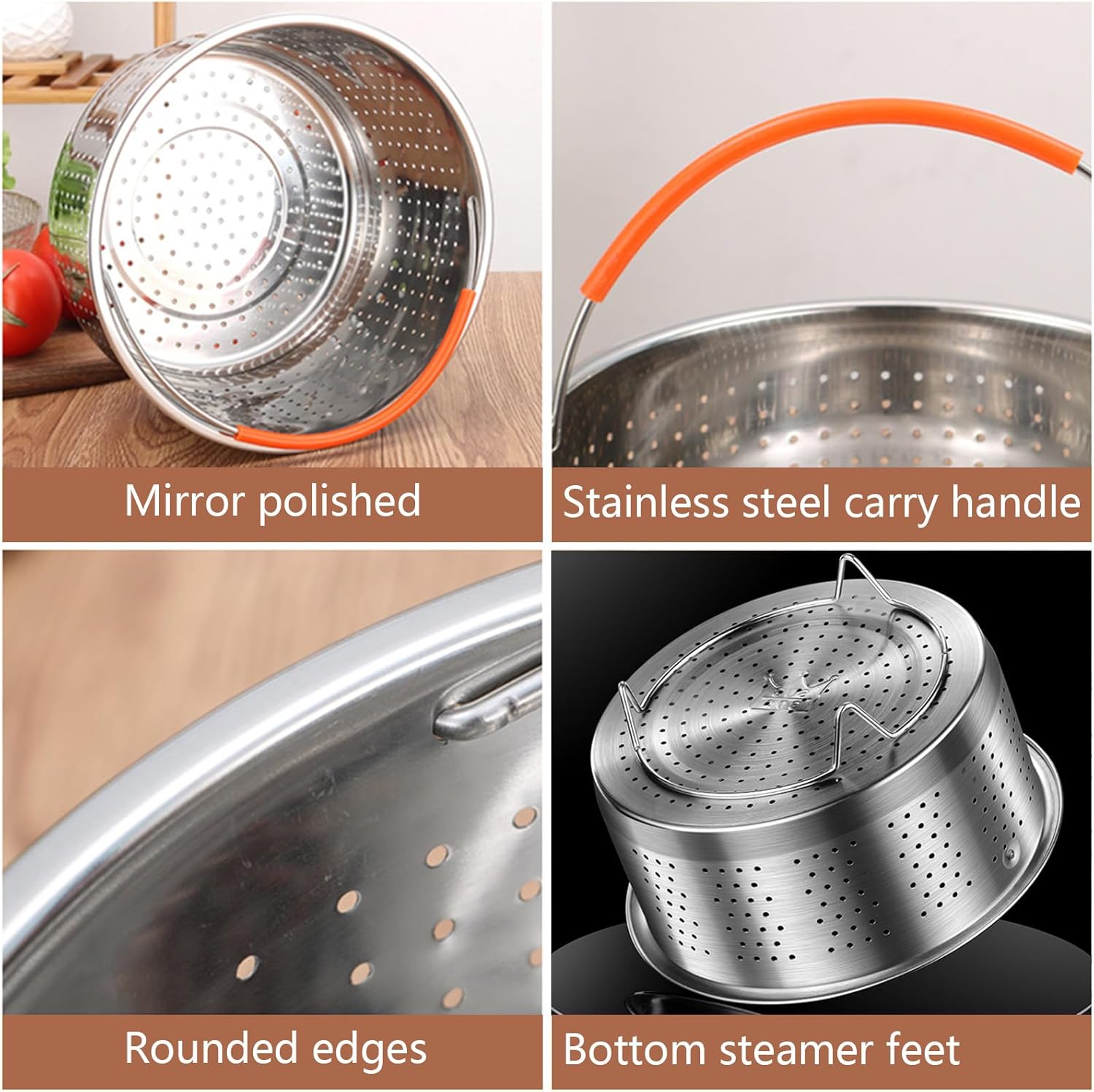- [Design mit Hohem Fuss]Edelstahl-Dampfgarer mit zwei Füssen an der Unterseite, bequem zum Erhitzen oder als Reiskocher, Suppentopf, Schnellkochtopf usw. zu verwenden! Mit Griff, leicht zu erreichen.