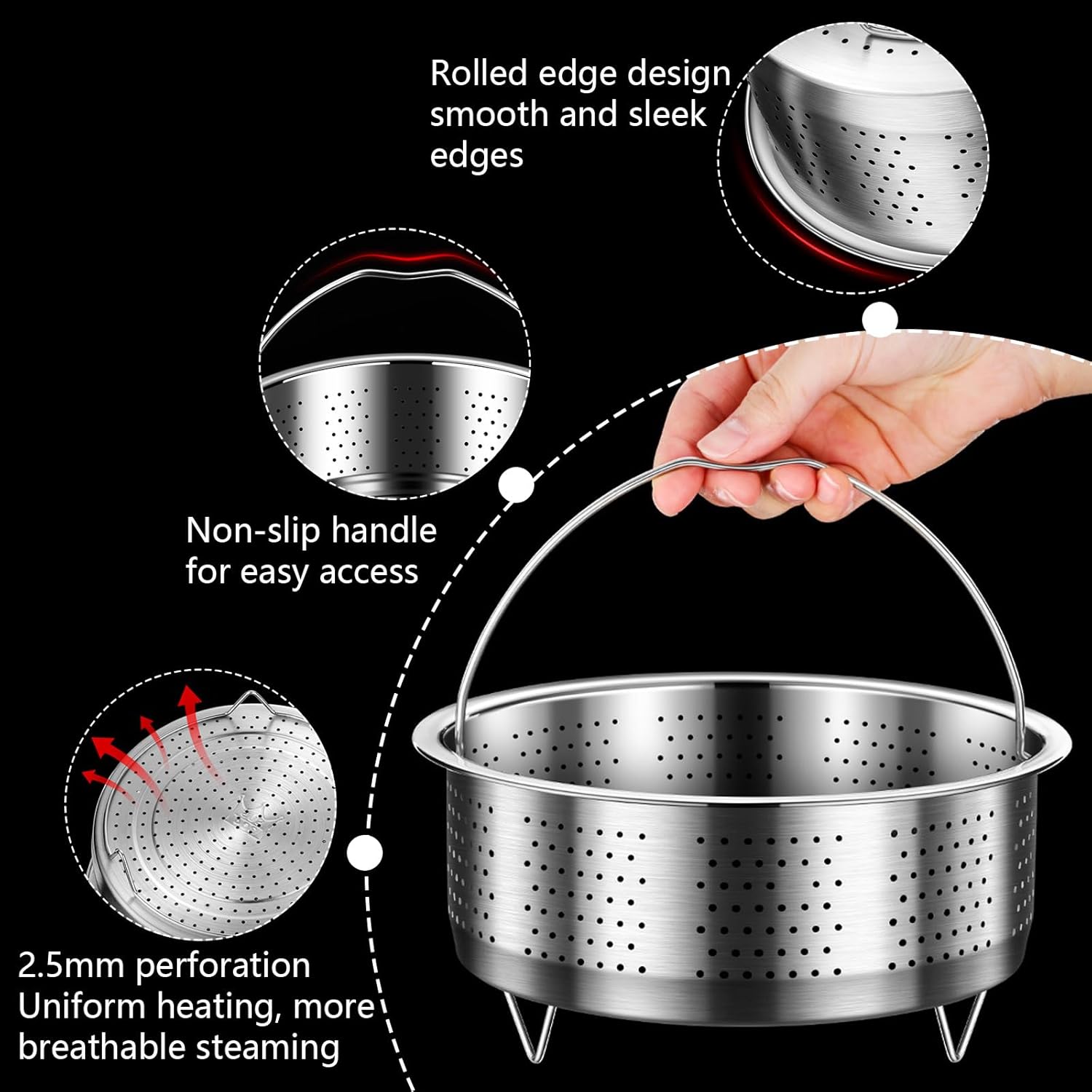 - [Lebensmitteltauglicher Edelstahl 304]Der Dampfeinsatz für Schnellkochtöpfe besteht aus lebensmittelechtem Edelstahl 304. Ungiftig und geruchlos für eine gesunde Verwendung. Spülmaschinenfest, einfach zu reinigen und geruchsneutral.