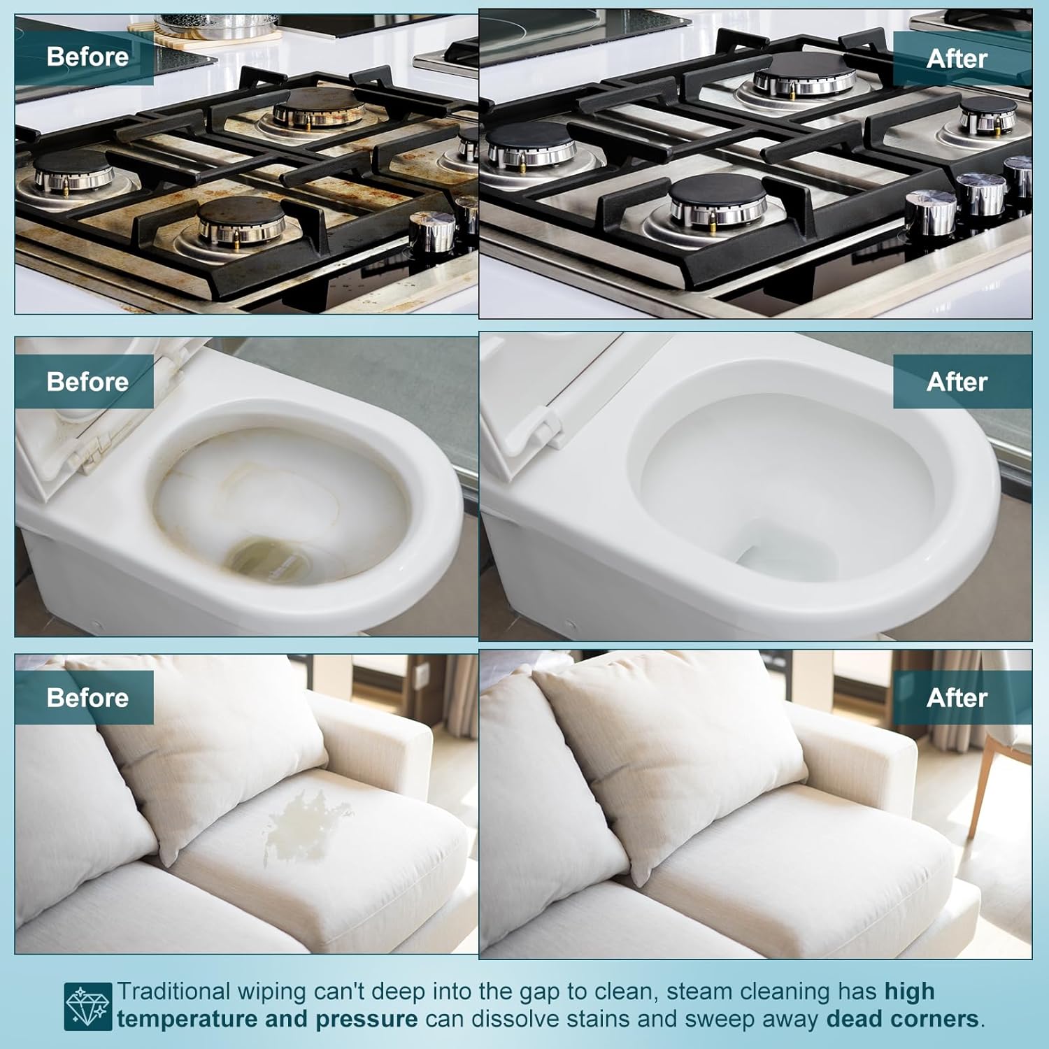 - 【Natürlich, 100 % chemiefrei und sicher – Dampfreiniger】Dieser dampfreiniger handgerät erzeugt ausschliesslich mit Wasser Hochtemperaturdampf und ist somit eine umweltfreundliche und sichere Option für Ihr Zuhause. Er ist besonders praktisch
