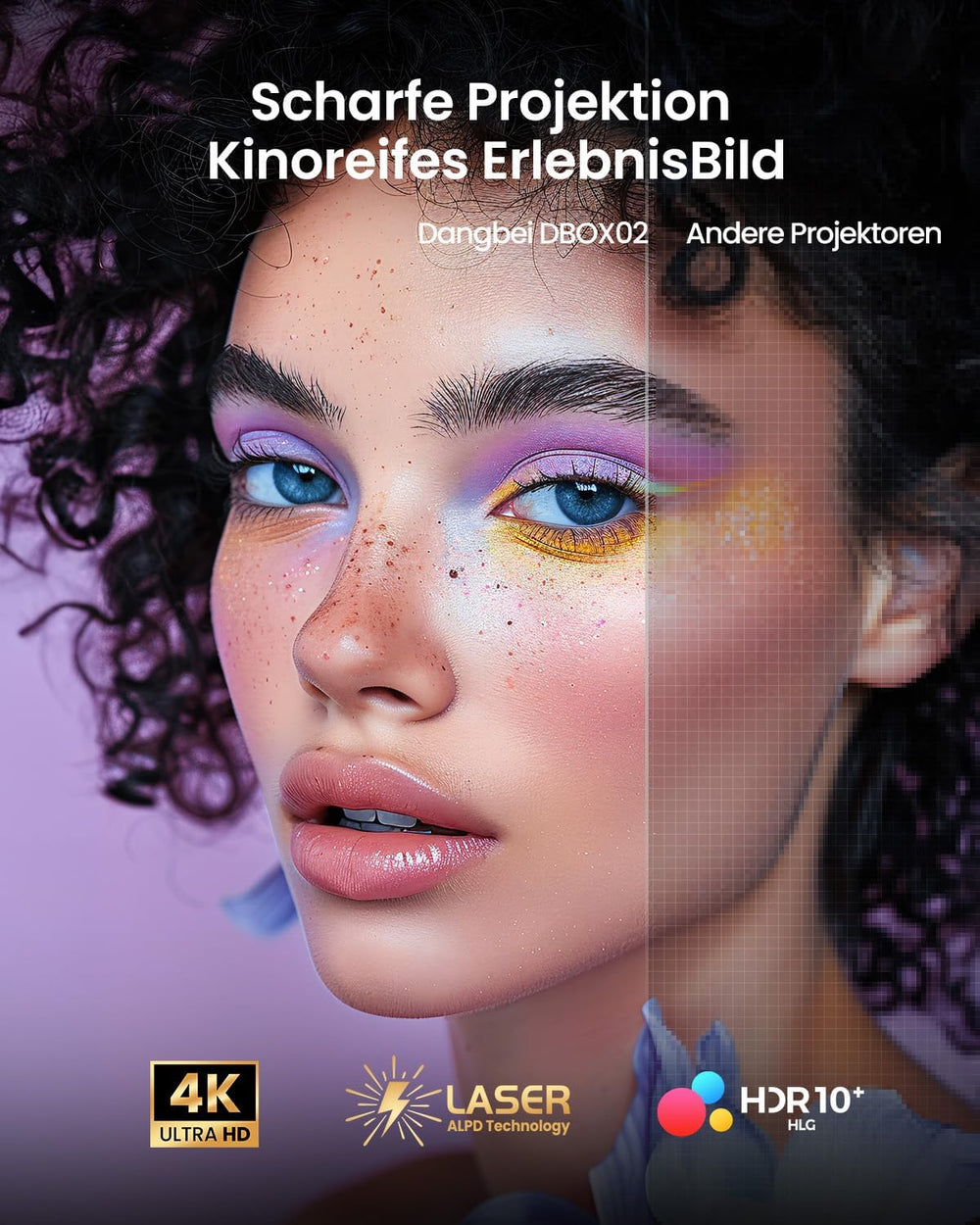 - Ultra-helle 4 K-Bilder: Sehen Sie Filme mit einem 4K Beamer und bis zu 200 Zoll, und lassen Sie sie auch bei Tageslicht mit 2450 ISO-Lumen, angetrieben von ALPD-Laser, hell erstrahlen.