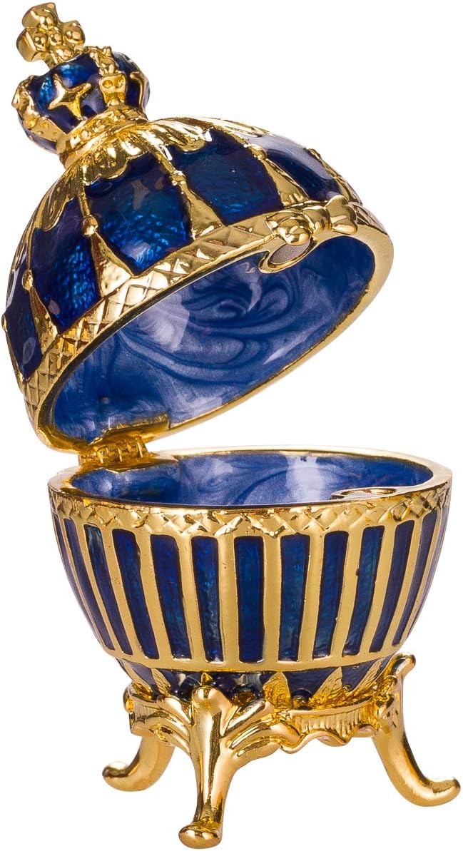 danila-souvenirs Fabergé-Stil Gerippten Ei Schmuckkästchen mit Kaiserkrone 6,5 cm blau