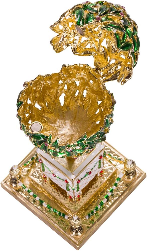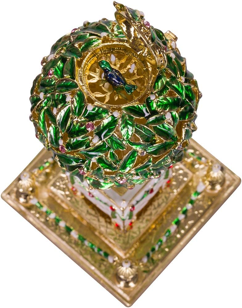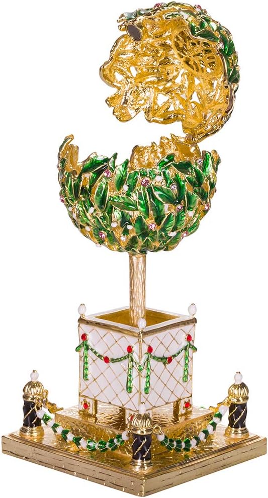 Fabergé-Stil Ei/Schmuckkästchen Lorbeerbaum (Orangenbaum) mit Vogel 16 cm