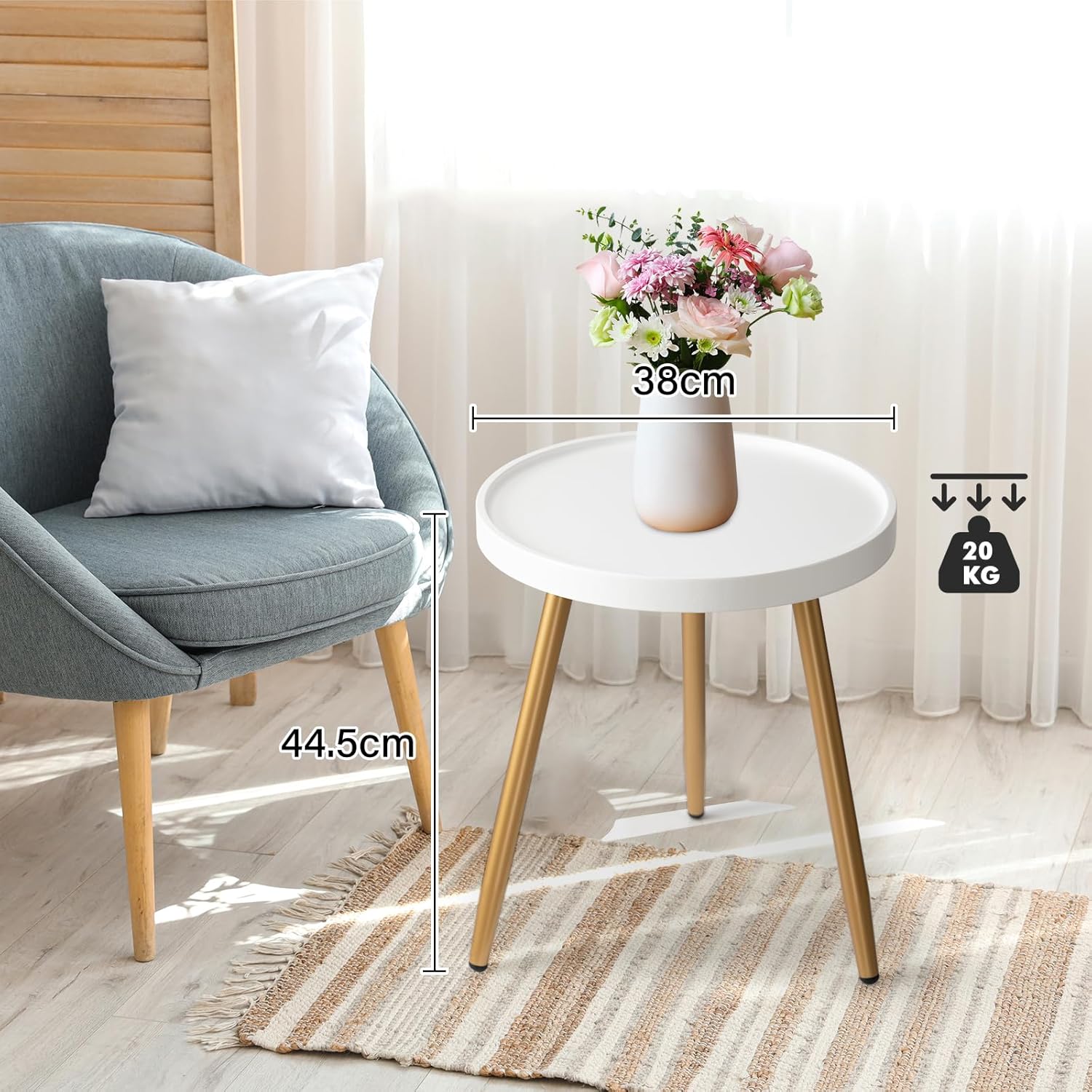 - Einfache Installation: Der kleine runde Beistelltisch kann mühelos zusammengebaut werden, es wird sogar kein Werkzeug benötigt. Alles was Sie tun müssen, ist die Tischbeine anzuschrauben.