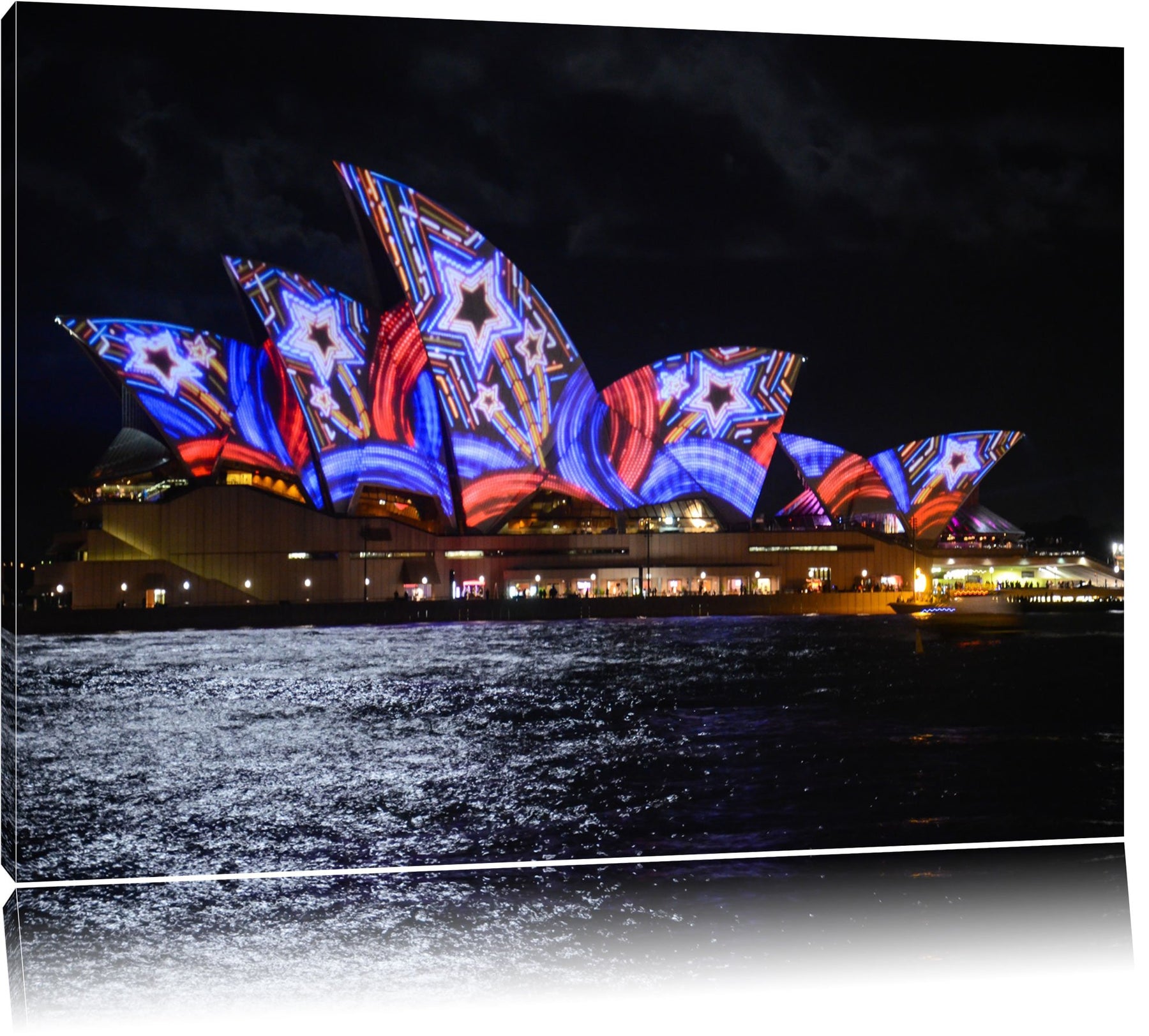 Dark Sydney Opera House Sternenbeleuchtungauf Leinwand, XXL riesige Bilder fertig gerahmt mit Keilra