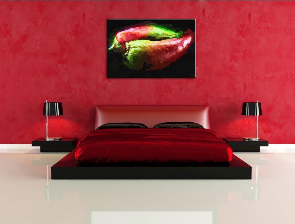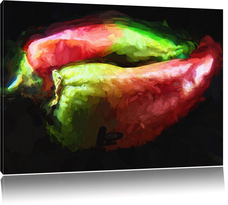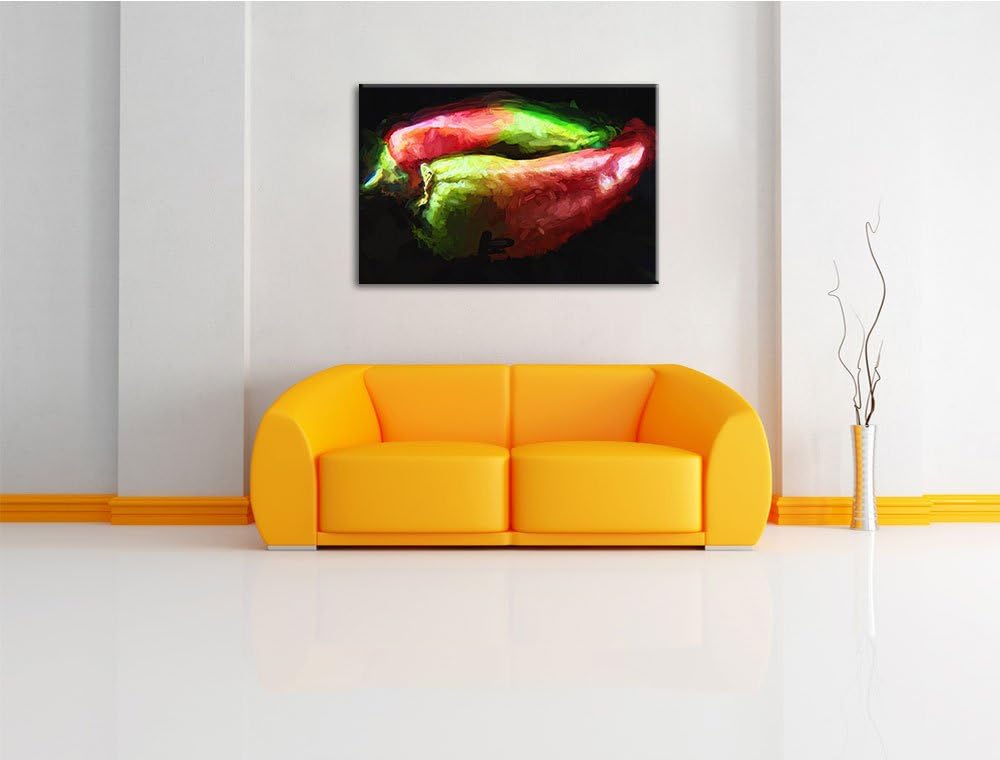 Dark zwei Chilischoten Deluxe Format: 100x70 cm auf Leinwand, XXL riesige Bilder fertig gerahmt mit