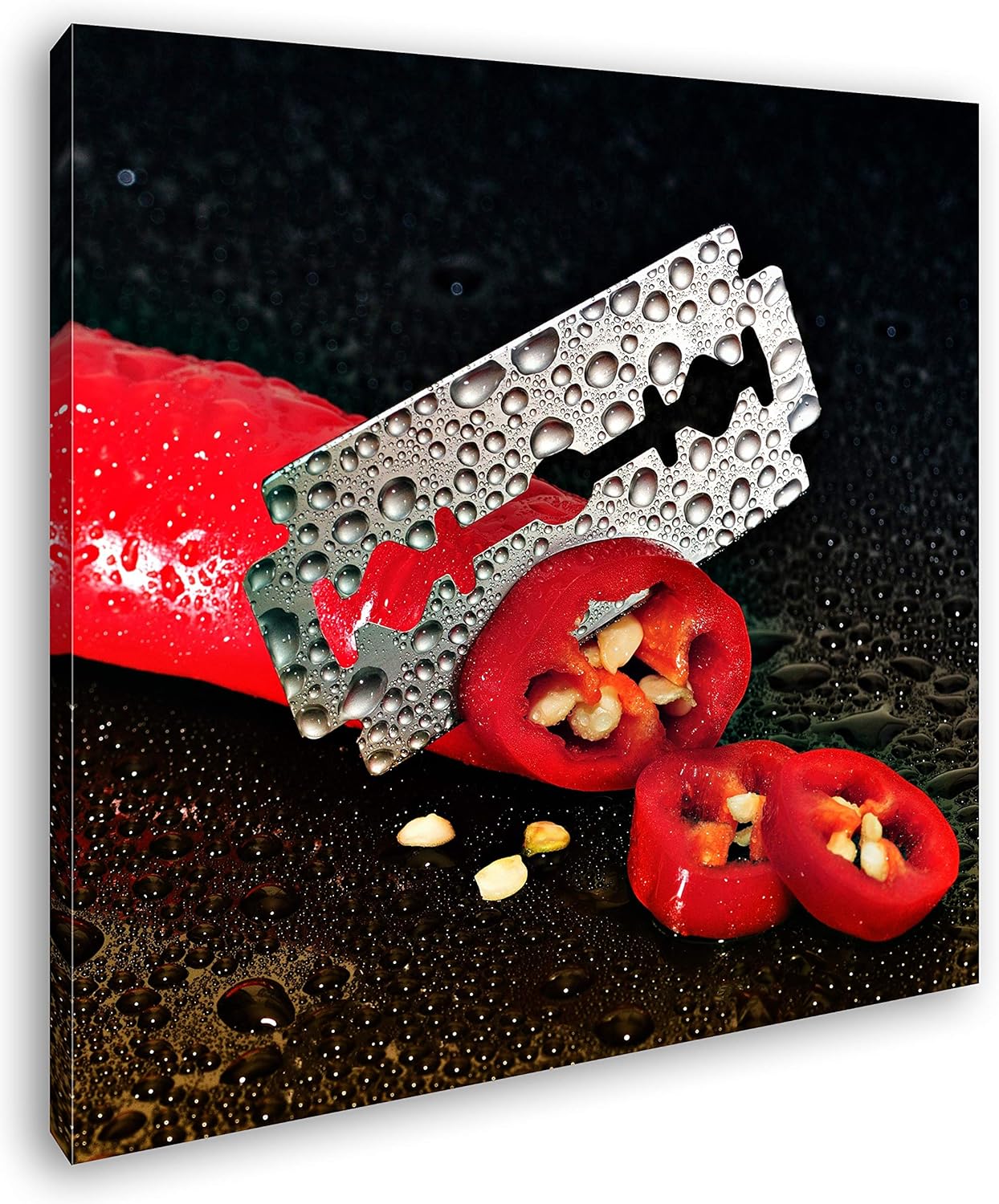 Dark extrem scharfe Peperoni im Format: 70x70 als Leinwandbild, Motiv fertig gerahmt auf Echtholzrah