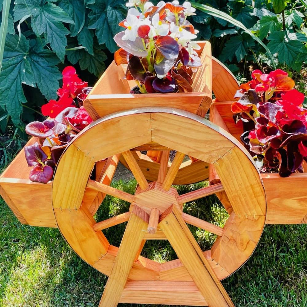 • Darlux - Dekorative Garten Holzrad mit 3er Blumenkasten zum Bepflanzen.