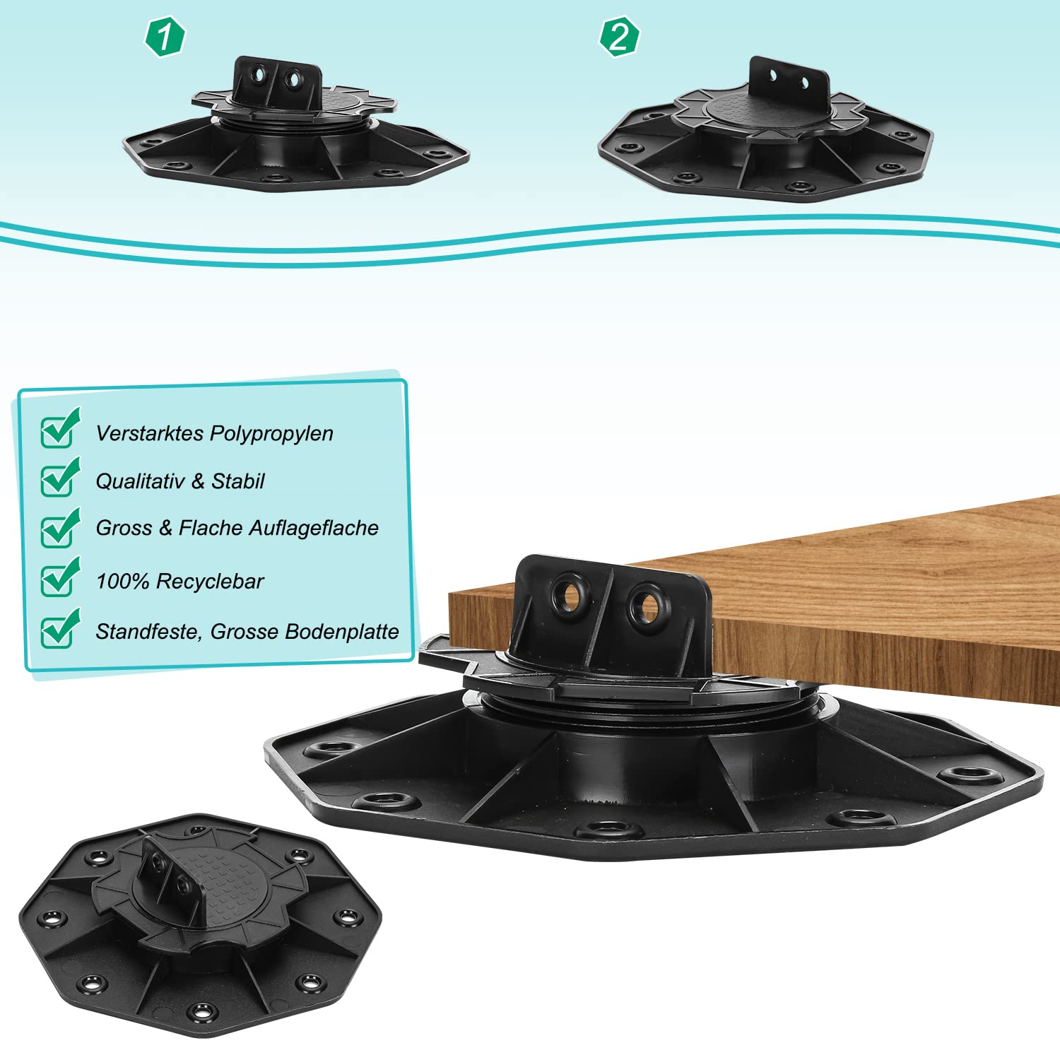 - 🏡【Höhenverstellung】 Jedes Standlager kann durch den Gewindering auf die gewünschte Höhe eingestellt werden. Sie können die Höhe jeder Basis entsprechend der Oberfläche anpassen.Einfache Montage, Sie können unter der Terrassenoberfläche