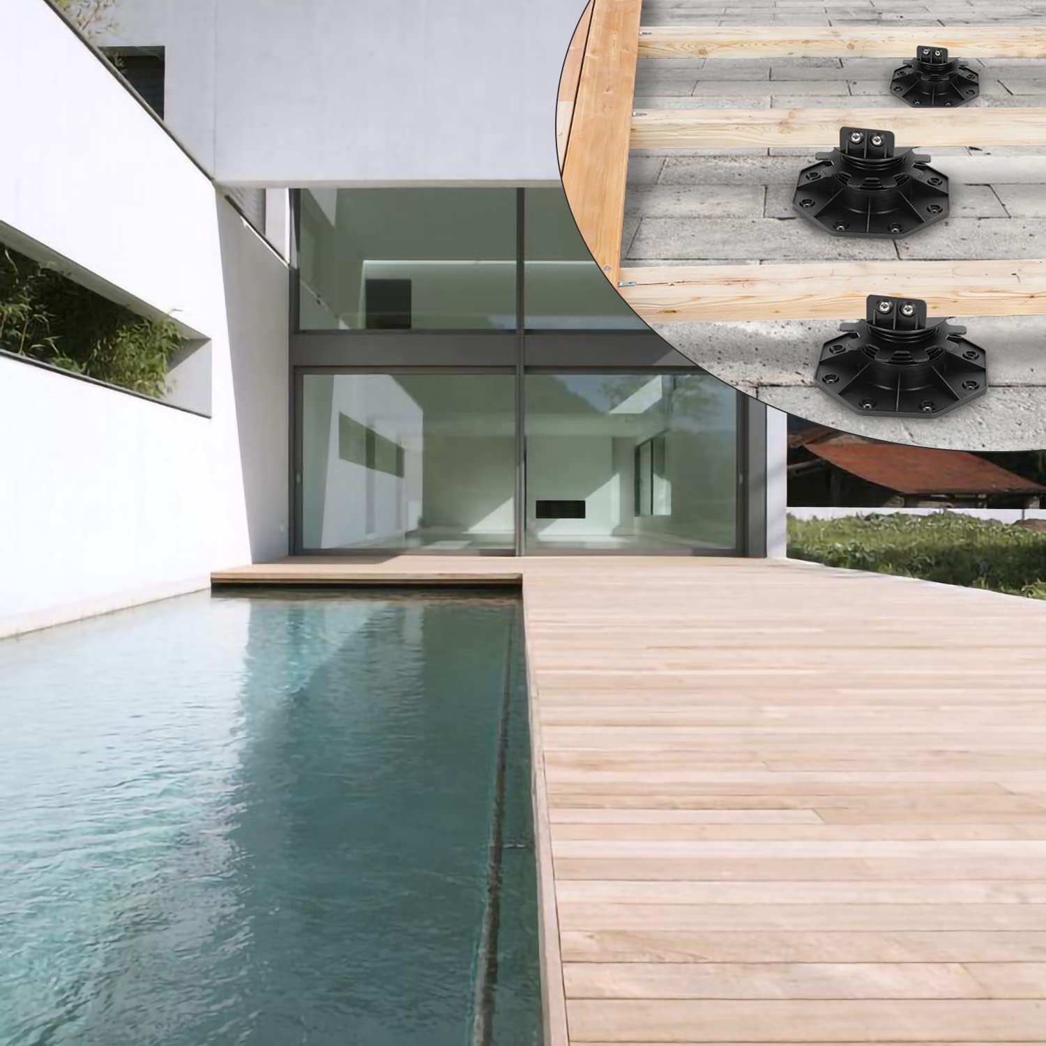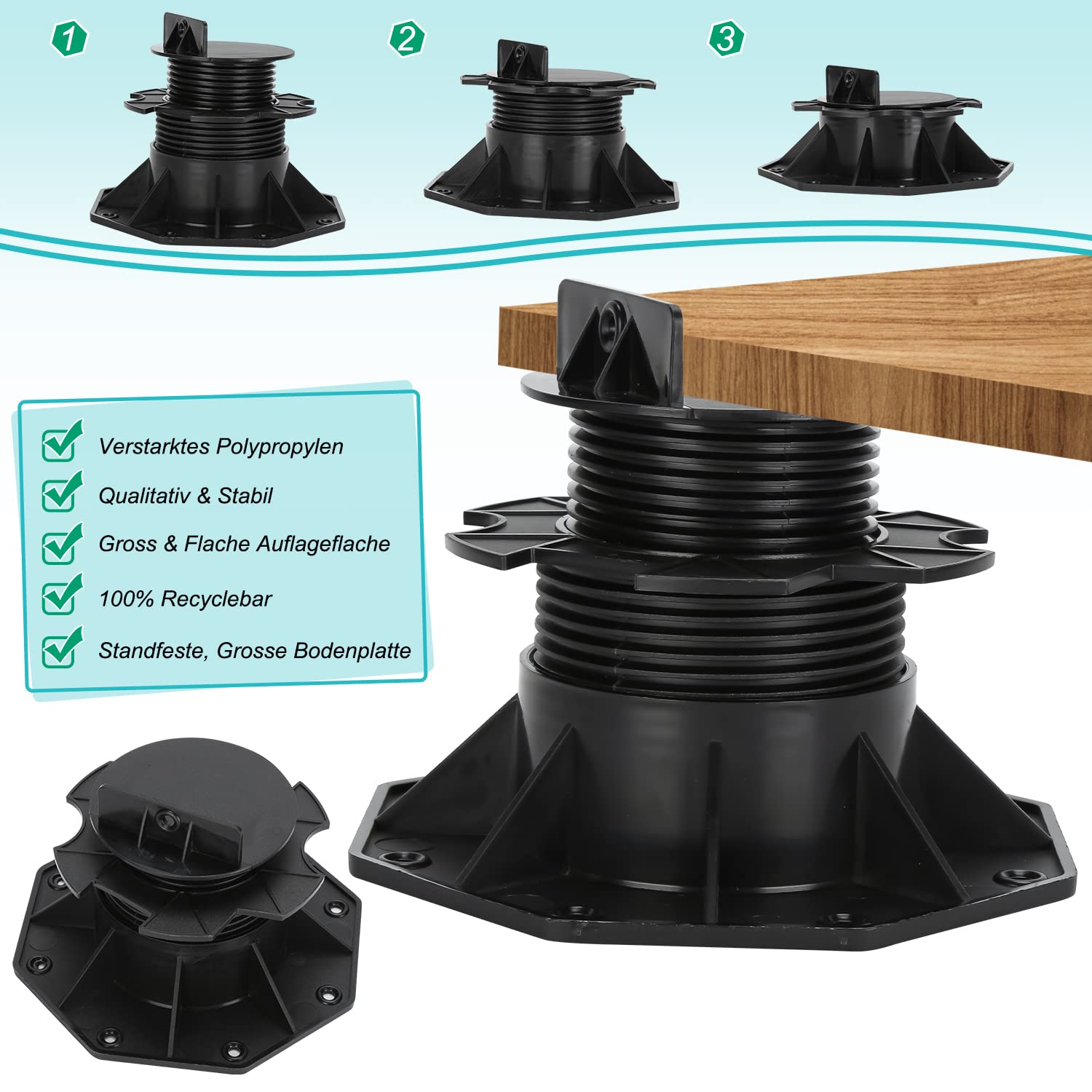 - 🏡【Höhenverstellung】 Jedes Standlager kann durch den Gewindering auf die gewünschte Höhe eingestellt werden. Sie können die Höhe jeder Basis entsprechend der Oberfläche anpassen.Einfache Montage, Sie können unter der Terrassenoberfläche