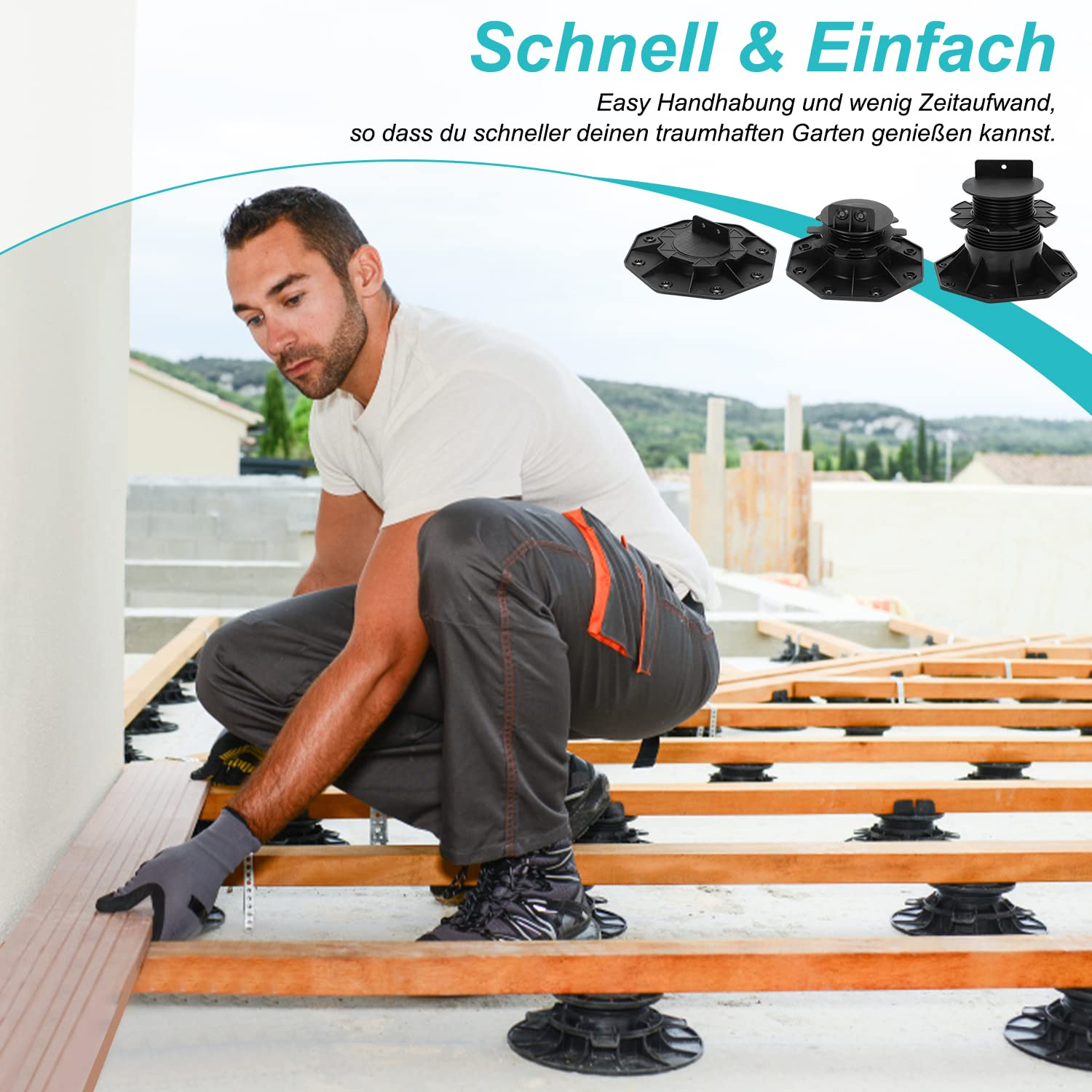 - 🏡【Höhenverstellung】 Jedes Standlager kann durch den Gewindering auf die gewünschte Höhe eingestellt werden. Sie können die Höhe jeder Basis entsprechend der Oberfläche anpassen.Einfache Montage, Sie können unter der Terrassenoberfläche