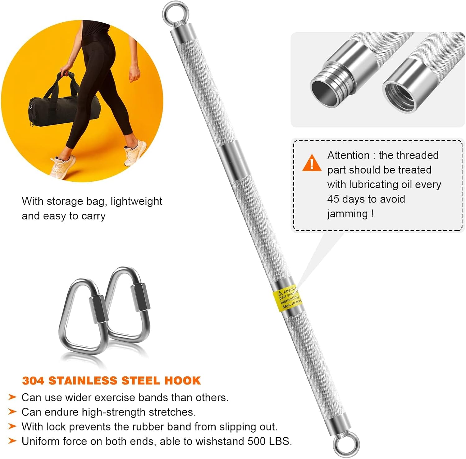 - ➤ 【Abnehmbar und tragbar】 Die Widerstandsbandstange ist abnehmbar, die Gesamtlänge des Stabs beträgt 98 cm / 38,5 ", einzeln 32,6 cm, nachdem er in 3 Abschnitte zerlegt wurde. Sie können ihn beliebig zu einer langen (98 cm) oder kurzen (68 cm)