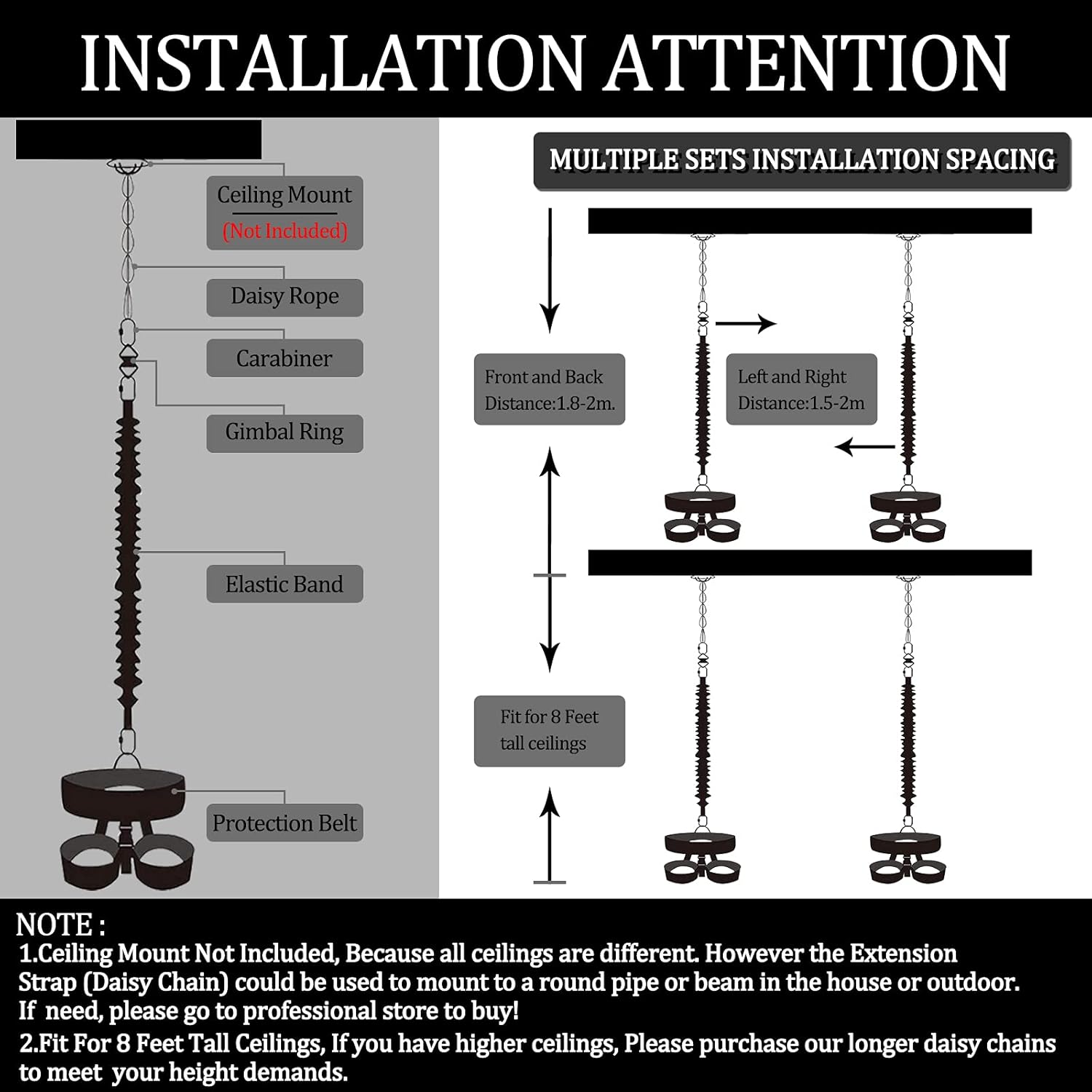 - 【Attentive Service & Produktliste】1 * Bungee Cord(100cm/39.37 "Länge, 2* Daisy Chains(105cm/41" Länge), 3* Karabiner (2 zu installieren, 1 für Ersatz), 1* Harness (verstellbarer gepolsterter Gurt um Taille und Oberschenkel, bieten maximalen