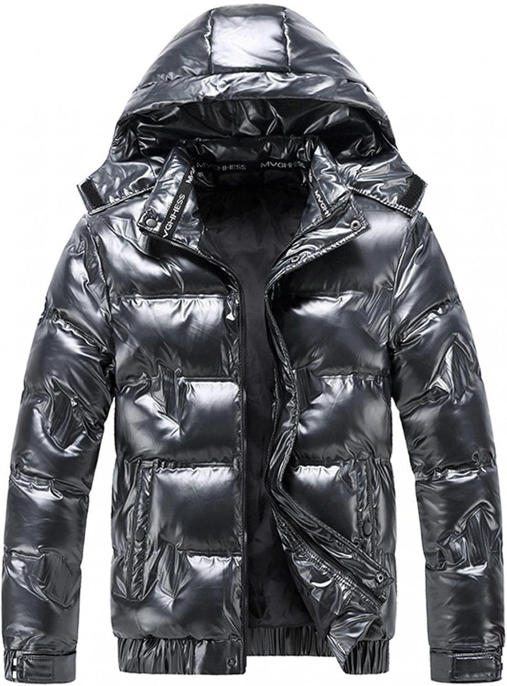 - Daunenjacke für Männer. Durchgehender Reissverschluss. Stehkragen. Abnehmbare Kapuze. Zwei Reissverschlusstaschen.