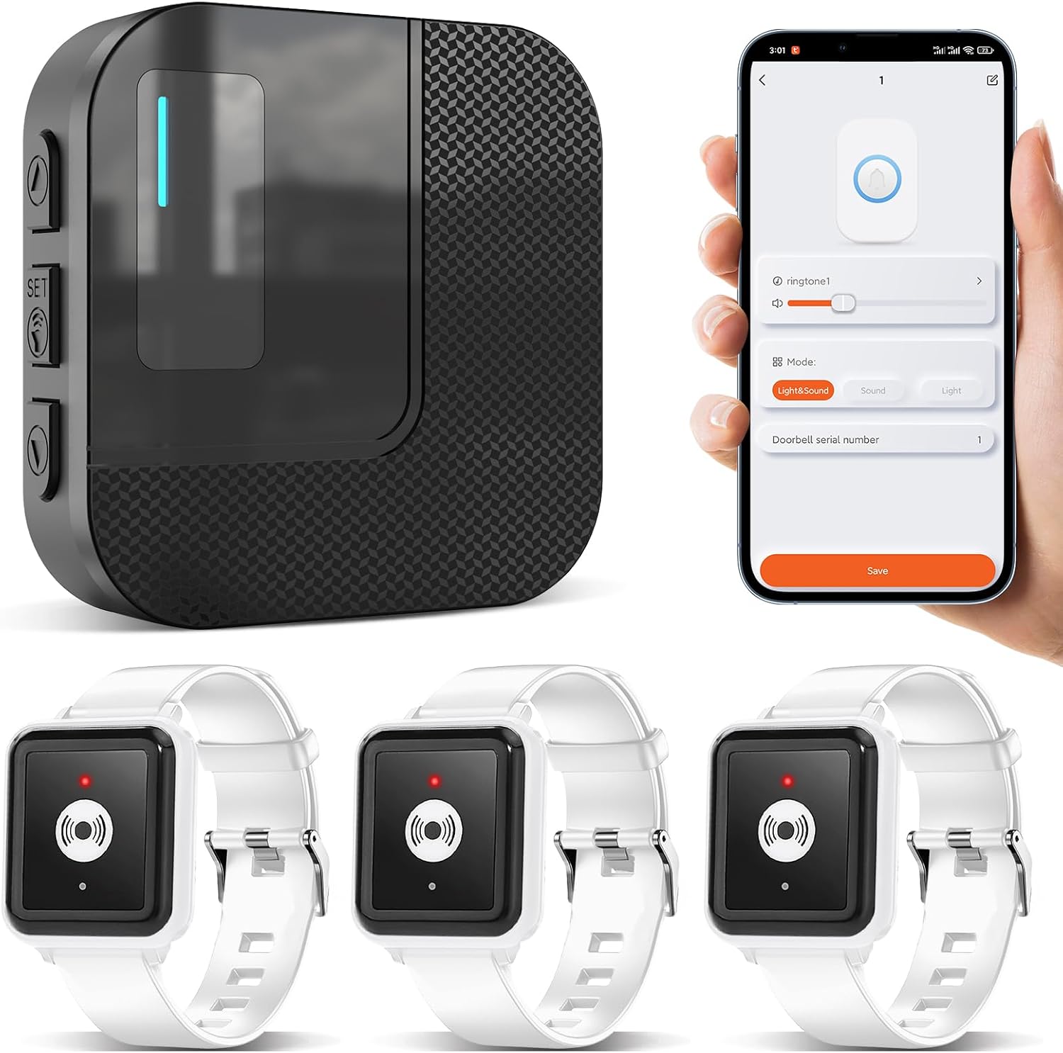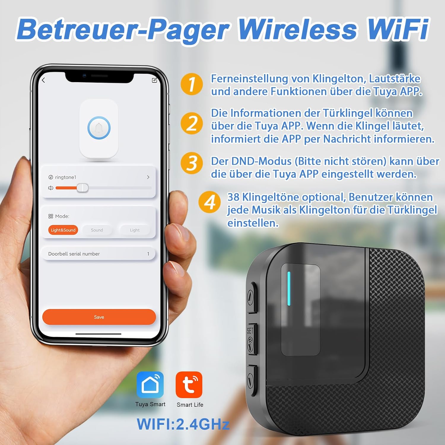 - EMPFANGEN SIE SIGNALE JEDERZEIT UND ÜBERALL: Wenn ein Elternteil oder ein geliebter Mensch Sie braucht und Sie nicht in der Nähe sind, können sie einfach die notfallklingel für zuhause mit dem Finger drücken, der Empfänger und das Smartphone werden
