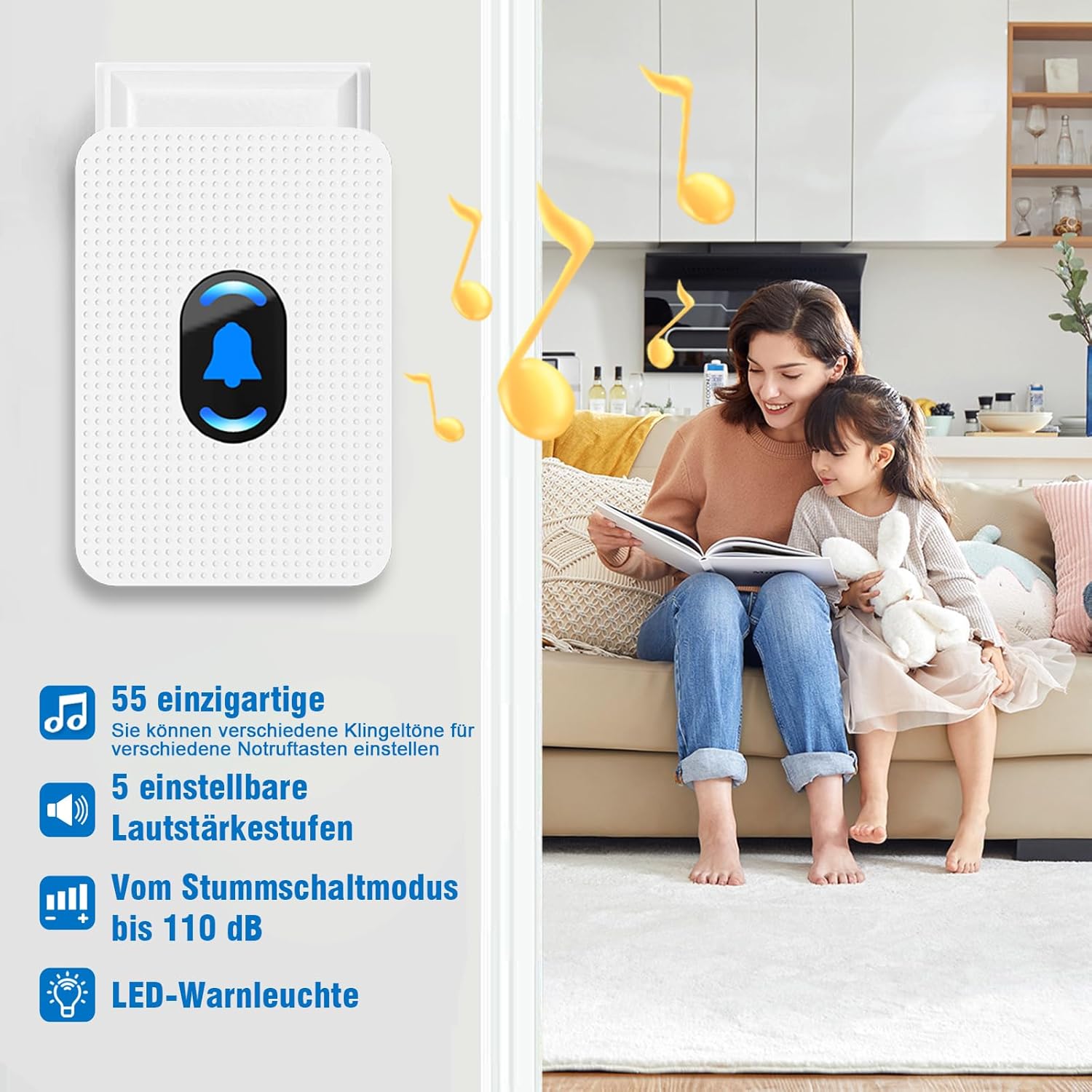 - 【55 Klingeltöne】Hausnotruf Senioren Ein Empfänger kann 55 Sender anschliessen und für jeden Sender einen Klingelton einstellen. Wir können ein Paket nach unseren Bedürfnissen auswählen.