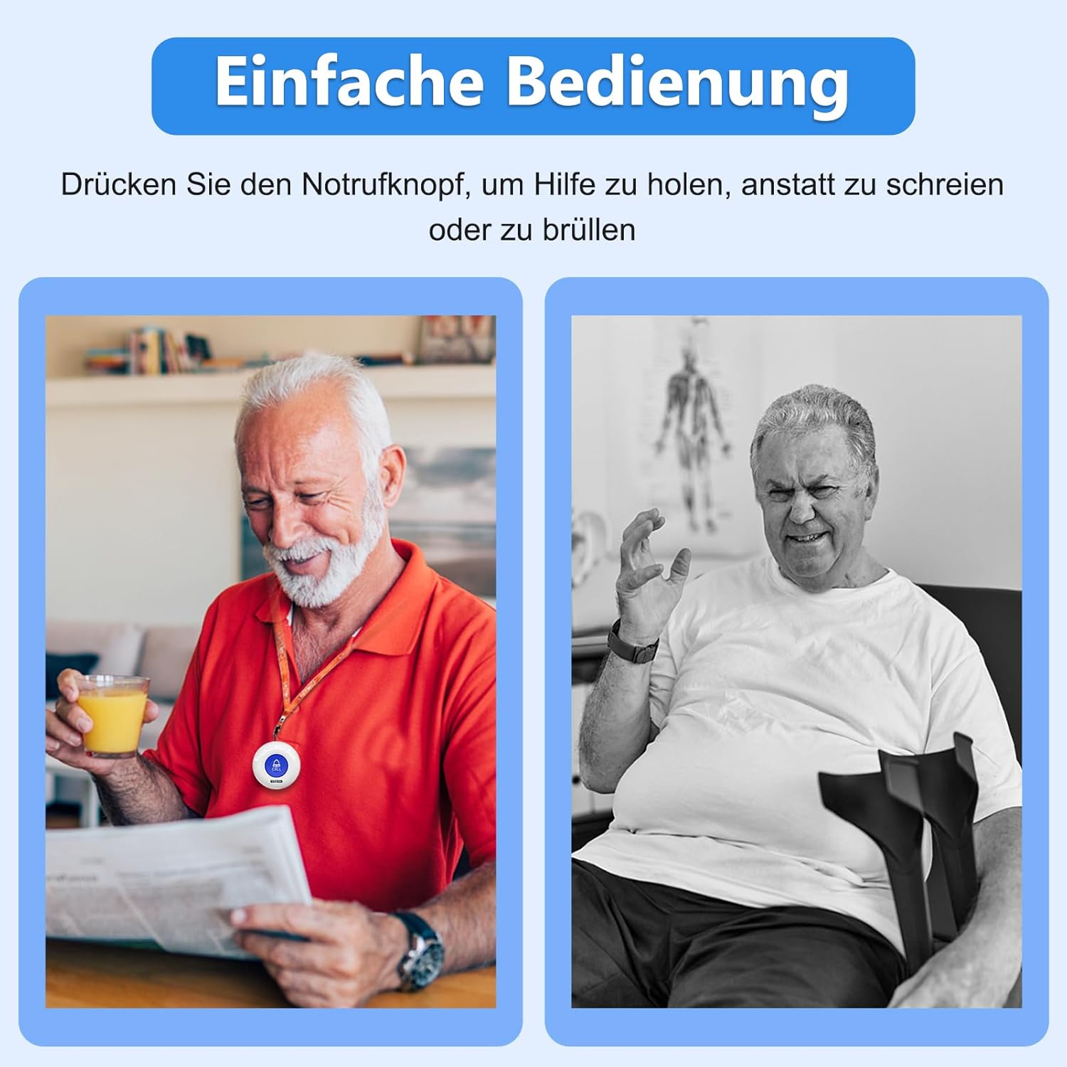 - 【Notfallknopf】Ideal als für diejenigen, die schnell Hilfe benötigen, wie ältere Menschen, Kinder, Behinderte, schwangere Frauen oder Kranke. Drücken Sie einfach die Anruftaste, um rechtzeitig und rücksichtsvoll zu pflegen, ohne zu schreien. Es
