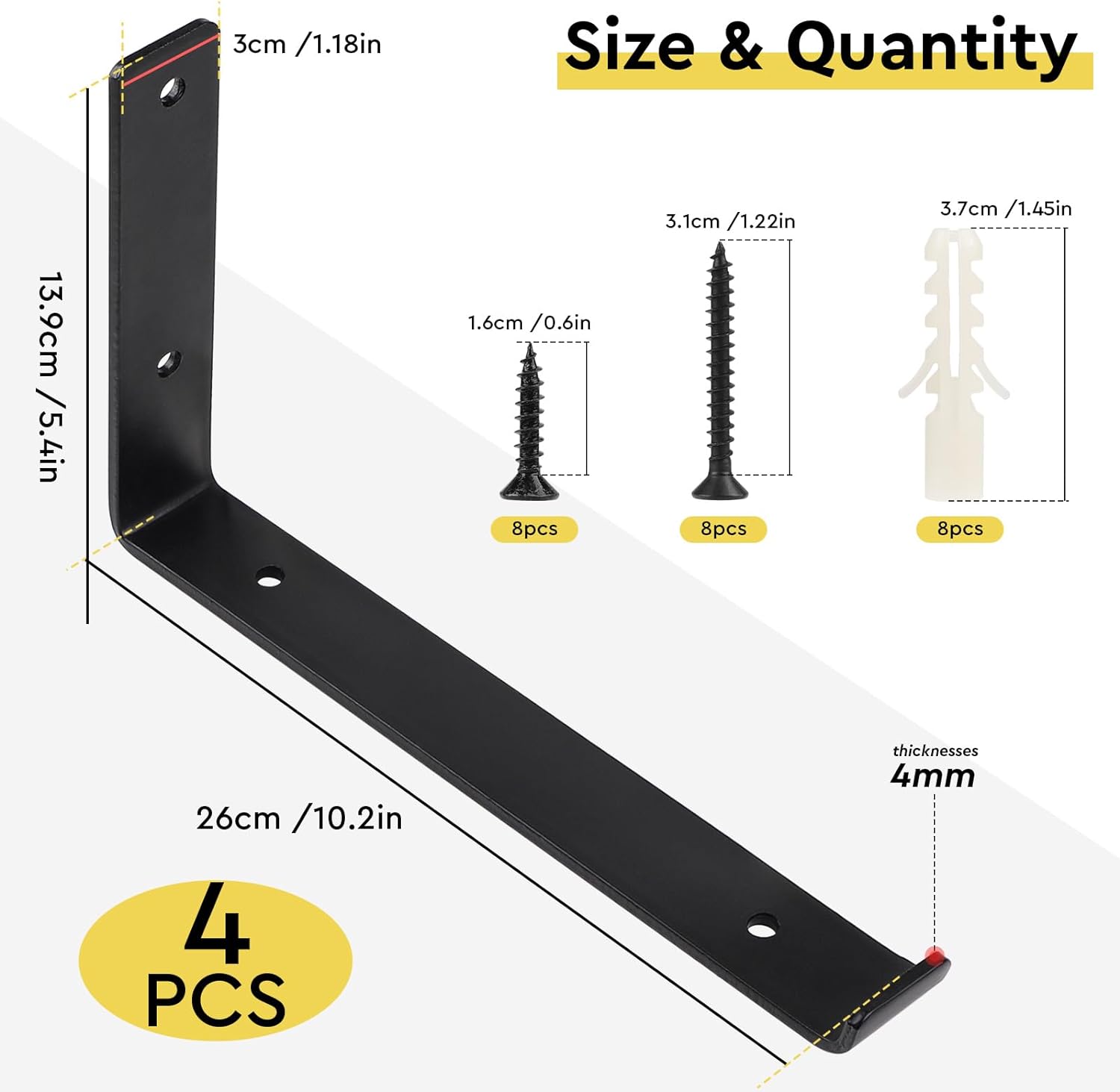 • 【Einfach zu Installieren】Das Paket enthält 4 Stück Regalhalter, 10 lange Schrauben, 10 Schrauben und 10 Spreizdübel, einfach zu installieren mit nur einem Schraubendreher.