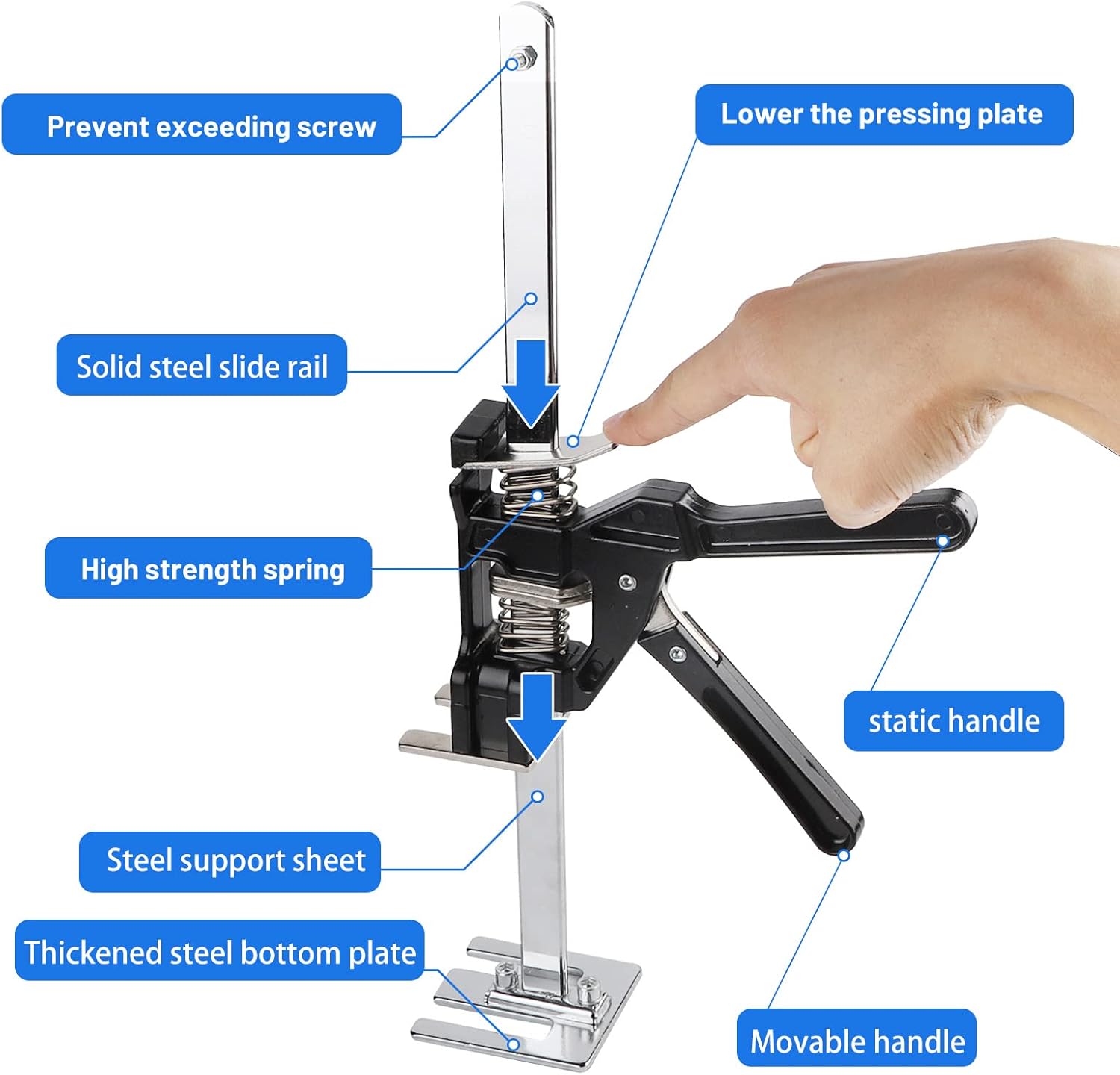 - đ§±ăPrĂ€zision steuerbarăHalten Sie den Griff fest, um schnell aufzusteigen, und drĂŒcken Sie das Paddel, um abzusteigen. Dank eines einfachen Verriegelungs- und Entriegelungsmechanismus hilft dieser Handheld Jack Tool dabei, wĂ€hrend der